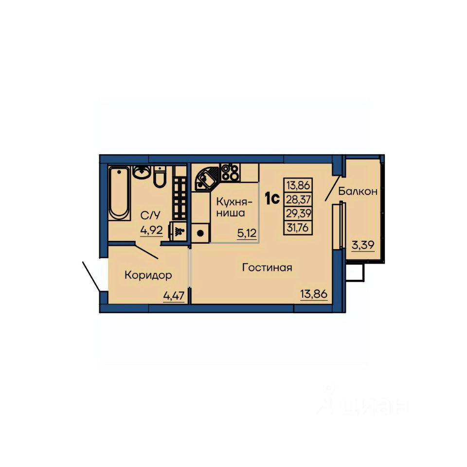 Квартира-студия на 10 этаже с балконом. Окна выходят во двор. Чистовая отделка под ключ. Дом в 15 минутах от центра города. Рядом остановки общественного транспорта, школы и детские сады.