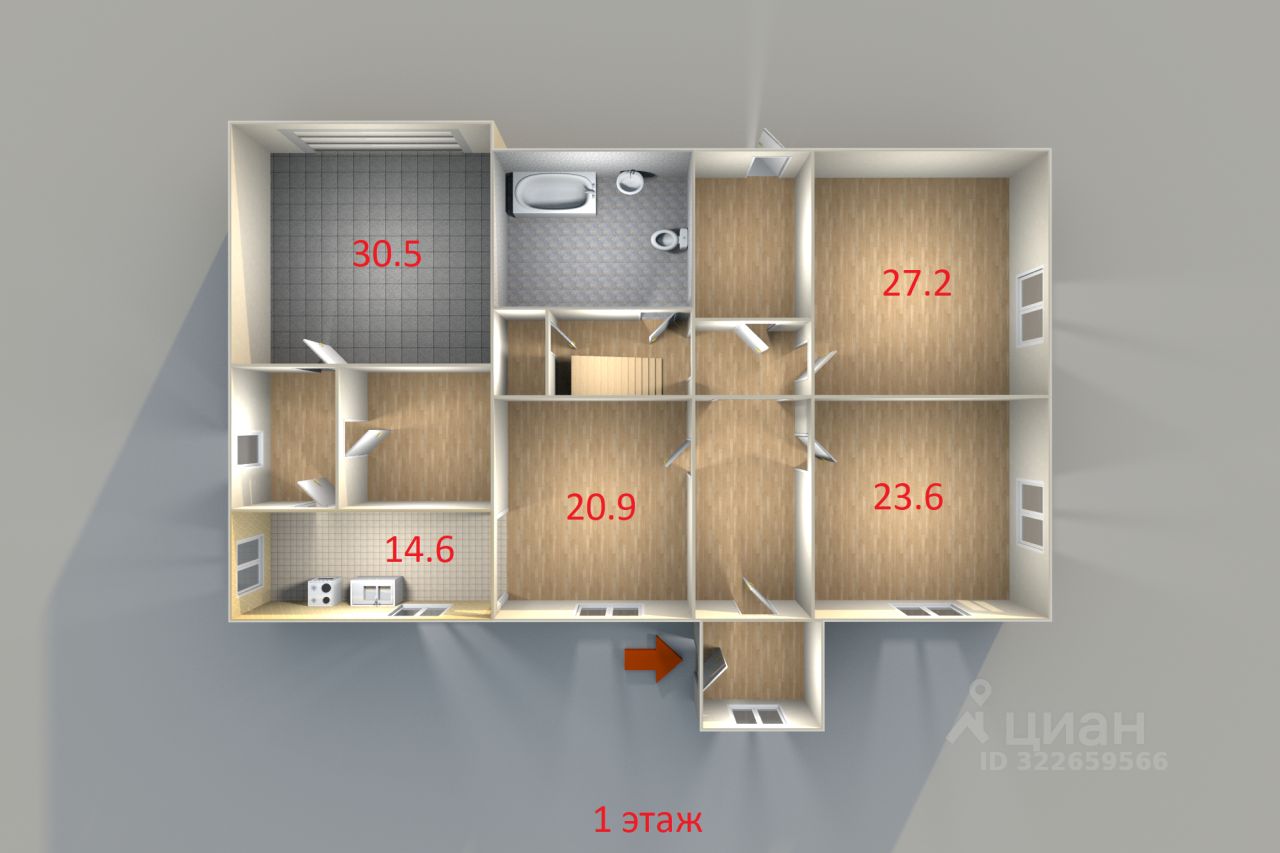 Фактическая площадь дома 500 кв.м. В доме четыре спальни, один гостевой сан. узел, один индивидуальный сан.