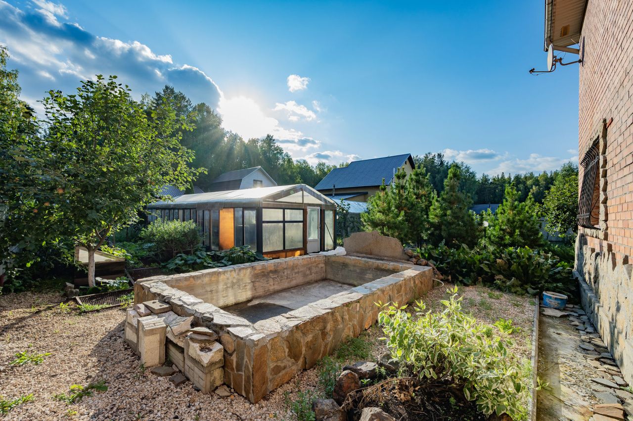 На участке растут кедры, сосны, голубая ель, красная и черная смородина, яблони, груша, декоративные и плодоносящие деревья и кустарники, и даже ДУБ. Имеется большая беседка с барбекю и вытяжкой, двухэтажная баня из бревна пригодная для круглогодичного проживания, капитальная теплица из металлокаркаса. Две скважины, в доме 25 метров, на участке 70 метров, с пригодной водой для употребления в пищу. Система водоотведения разделена по отводам канализационных отходов путем деления выгребных ям. Одна яма служит для отходов канализации с кухни, практически не требуется откачка, вторая яма служит резервуаром для отходов с сан. узлов.