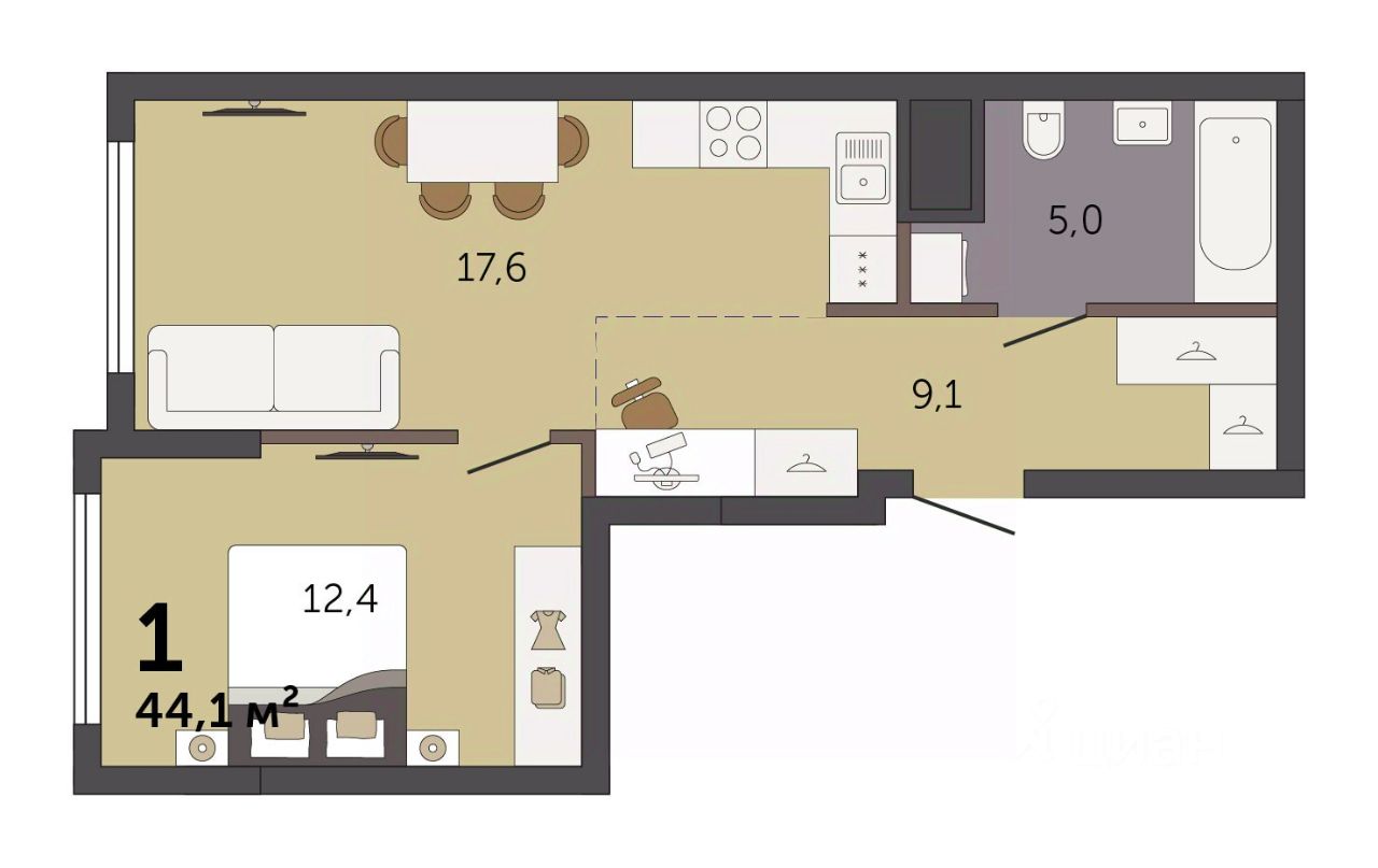 Продаётся 1-комнатная квартира в строящемся доме (Секция 1.1), срок сдачи: I-кв. 2028, общей площадью 44.1 кв.м., на 2 этаже. Новый жилой комплекс ''Парк Культуры'' от застройщика ''СЗ Новый Дом'' расположен по адресу: г. Екатеринбург, Базовый переулок.