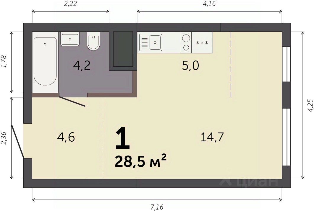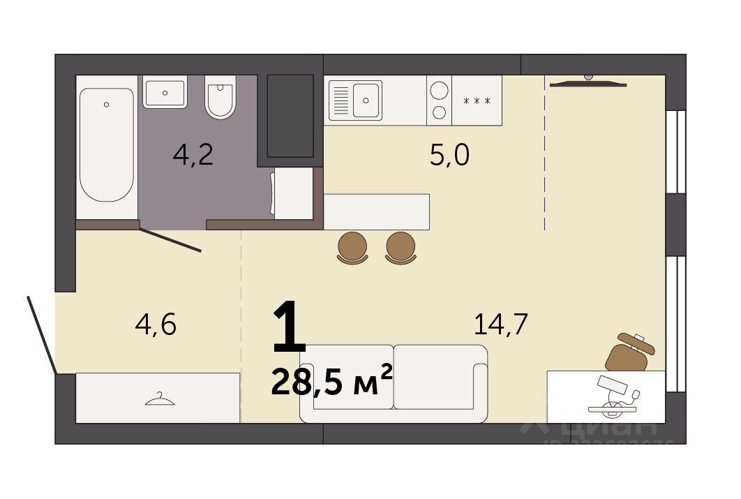 Продаётся студия в строящемся доме (Секция 1.1), срок сдачи: I-кв. 2028, общей площадью 28.5 кв.м., на 5 этаже. Новый жилой комплекс ''Парк Культуры'' от застройщика ''СЗ Новый Дом'' расположен по адресу: г. Екатеринбург, Базовый переулок.