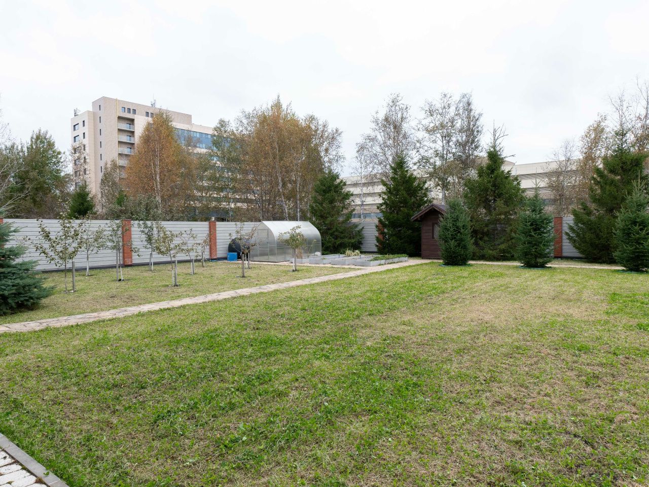 Ухоженный отсыпанный земельный участок с газоном из клевера, многолетними насаждениями из кедра и пихты, елок. Есть мини-огород с теплицей и системой полива. Дом и участок огорожены забором, установленный на фундаменте, откатные ворота.