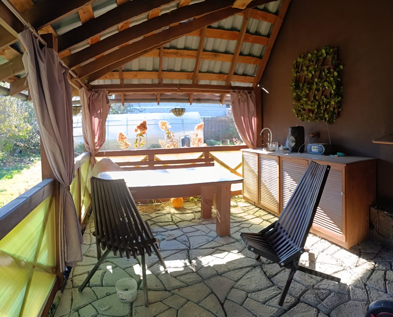 На территории участка: - гараж, есть смотровая яма, - баня отапливается дровами (достаточно одной закладки), теплые полы, централизованный душ: горячая и холодная вода, - теплица 8 м, овощная яма, - к дому примыкает летняя веранда со встроенной кухней (вода заведена), - вода подведена по участку для полива.