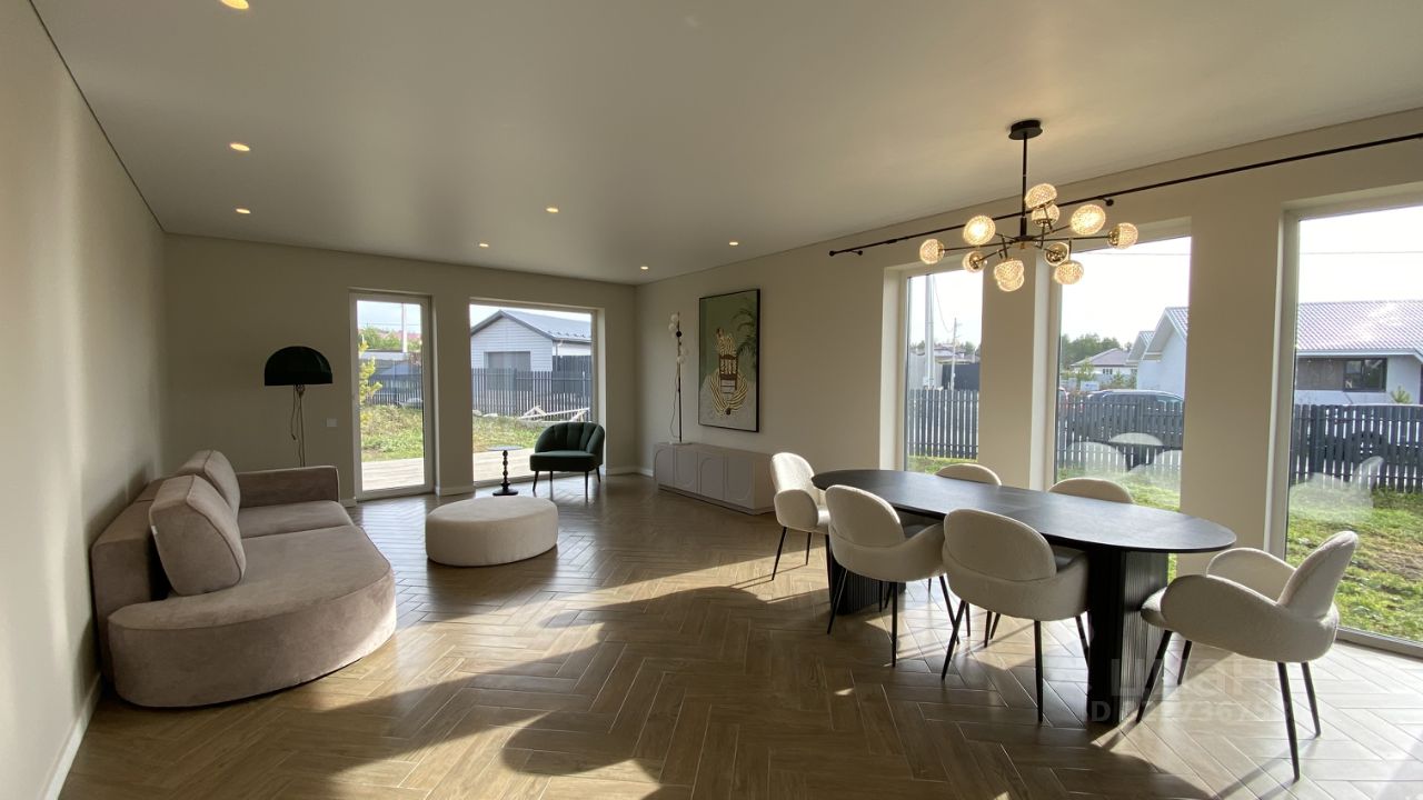 Сердце дома: Кухня-гостиная 40 м² с панорамным остеклением и прямым выходом на террасу. Приватная зона: 3 уютные спальни, включая мастер-спальню с собственной гардеробной и санузлом. Комфорт для семьи: 2 санузла, 2 гардеробные и удобная постирочная.