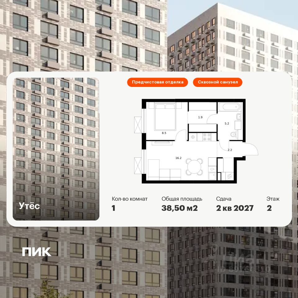 Продаётся 1-комн. квартира площадью 38,5 кв.м на 2 этаже 29 этажного дома (Корпус 6, Секция 1) проекта ПИК Утёс. Светлый просторный подъезд на уровне земли, функциональная планировка, большие окна, предчистовая отделка.