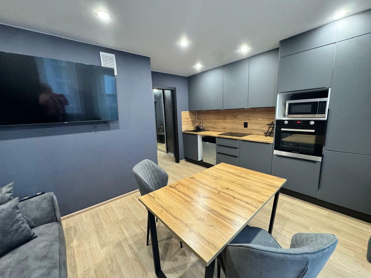 Продается стильная квартира с дизайнерским ремонтом в новом доме комфорт класса. Без дополнительных вложений, можно заехать и жить. Низкие коммунальные платежи Вся мебель и техника остается новым владельцам. Студия, с удобным зонированием на зону кухни и зону отдыха. Балкон с остеклением в пол. Кухонный гарнитур со встроенной бытовой техникой: духовой шкаф, варочная поверхность, встроенный холодильник и посудомоечная машина. Большой шкаф-купе в коридоре. Санузел выполнен в керамограните, сантехника и стиральная машина подобраны в цвет интерьера. Солнечный - современный европейский район с хорошей инфраструктурой. Очень уютный и комфортный для жизни. Микрорайон славится обилием зелени, магазинами, кафе. В микрорайоне есть школы и детские сады, спортивный комплекс - ледовая арена ''АВТО'' (ул. Счастливая, 14) с двумя ледовыми аренами, спортивным и тренажёрным залами, бросковой зоной, Солнечный парк с многофункциональными зонами: детские и игровые площадки, места для мероприятий и фестивалей, велосипедные дорожки и прогулочные аллеи со скамейками. Транспортная инфраструктура - автобусные остановки, трамвайная линия. По Лучистой улице на машине за 5 минут можно доехать до ЕКАД (кольцевой дороги), до центра города - за 30 минут. От всех домов до ближайших остановок общественного транспорта - 3-5 минут пешком. Квартира подойдет, как для тех, кто только начинает жить самостоятельно, так и для сдачи в аренду. Юридическая чистота: один взрослый собственник, первое право: покупка по ДДУ, отсутствие обременений, ипотеки и мат. капитала.