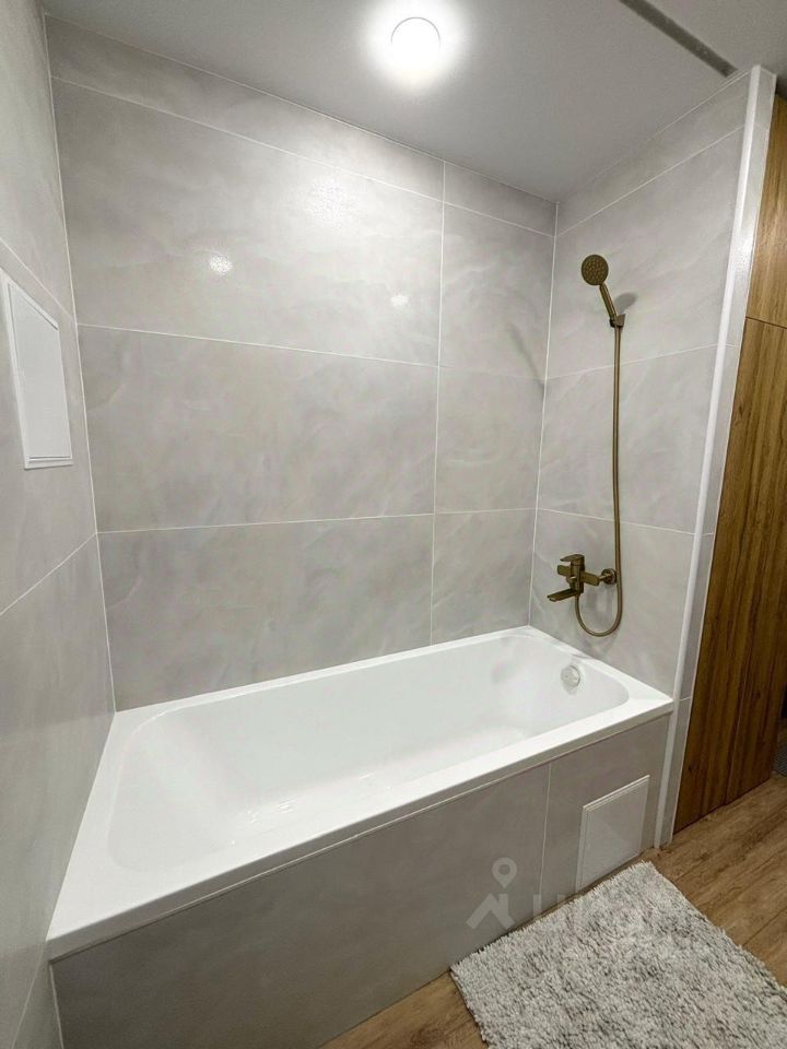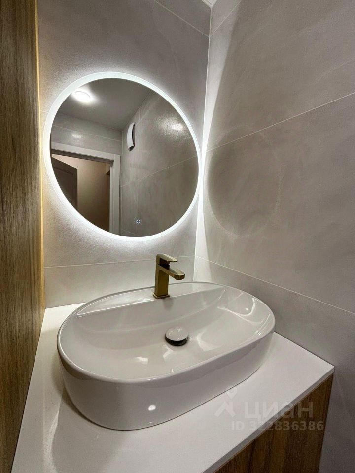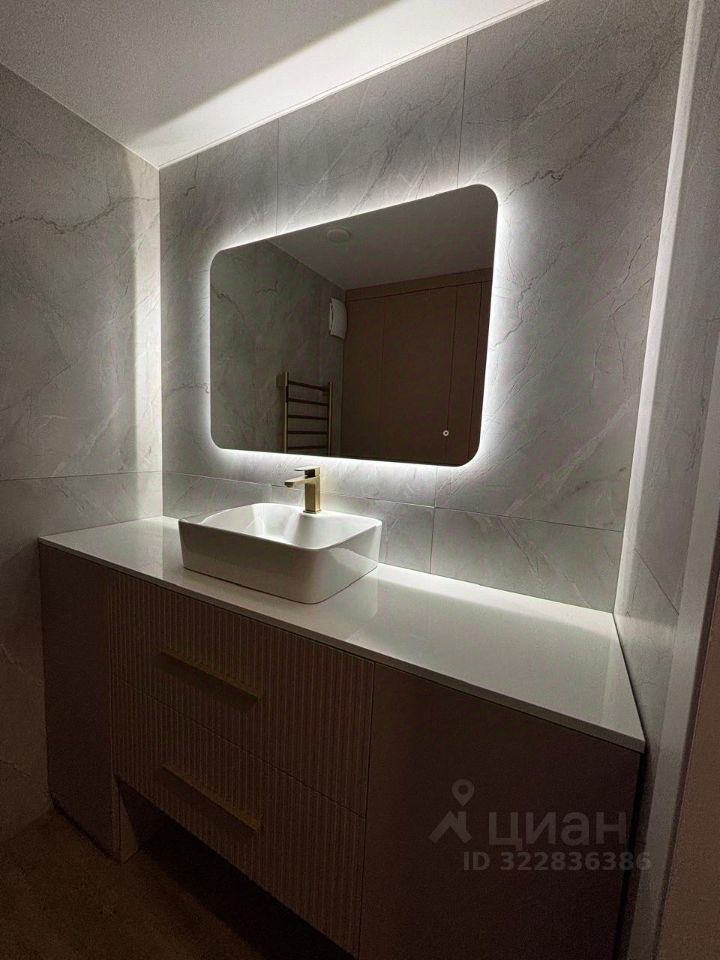 Основной сан.узел (6,4 кВ/м) —пол и стены керамогранит,установлена инсталляция, гигиенический душ, ванная, электрическая сушилка для полотенец, натяжной потолок, зеркало с подсветкой, золотая фурнитура/сан.техника, встроенный шкаф под стиральную и сушильную машины.
