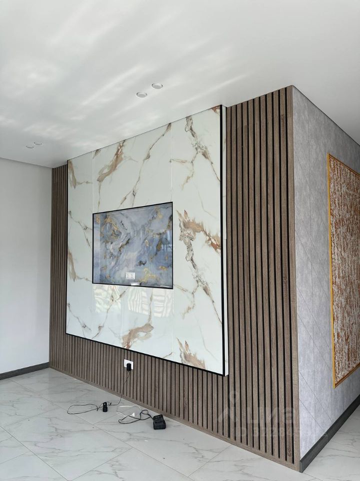 Стены обои под покраску Пол ламинат и кафельная плитка в ванной Потолок натяжной Дополнительно: светильники, выключатели, розетки