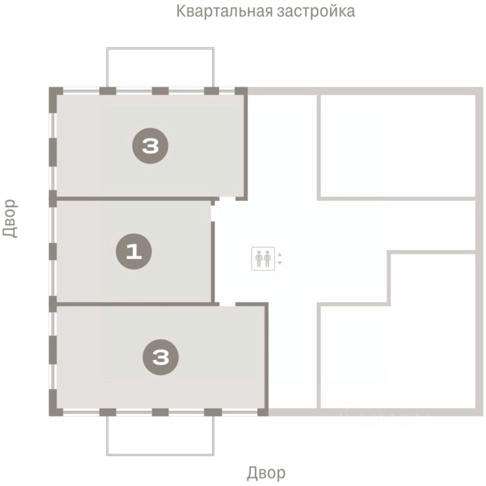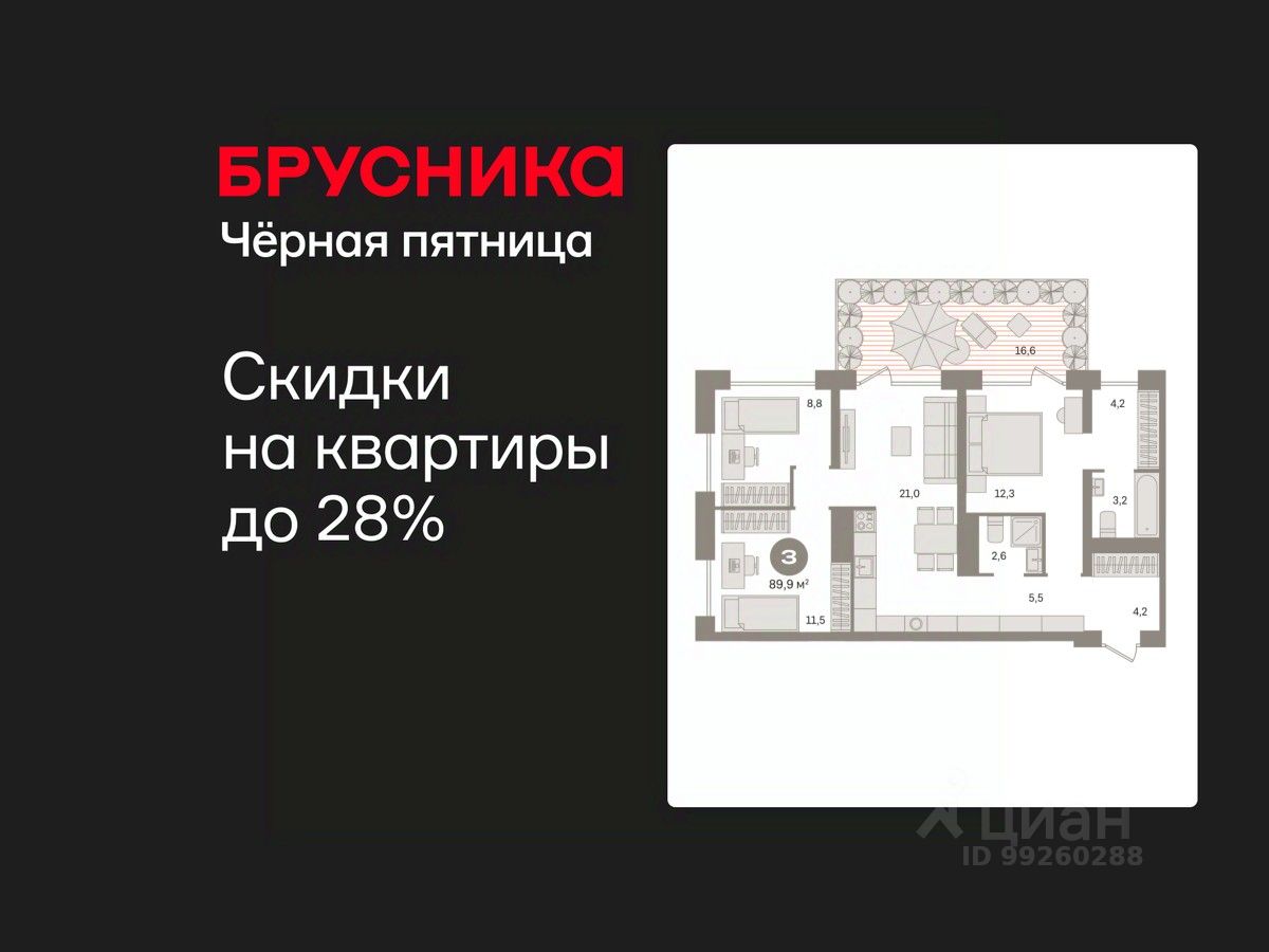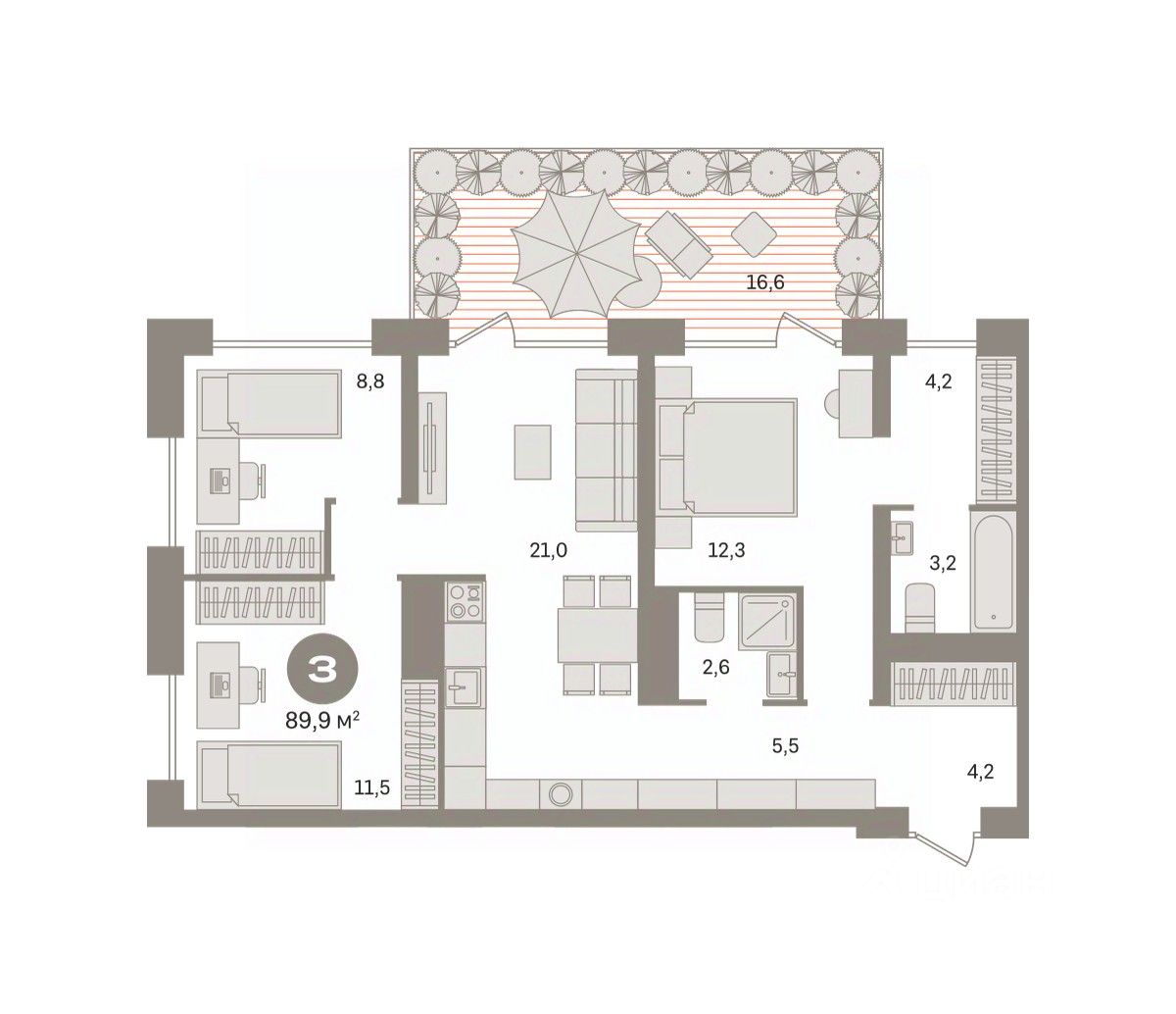 Квартира с кухней-гостиной и тремя спальнями в Северном квартале. Особенности планировки: гардеробная, вид во двор, предчистовая отделка, мастер-спальня, терраса. квартиры в нашей базе: СКВ04.2-Ж1.1.3.
