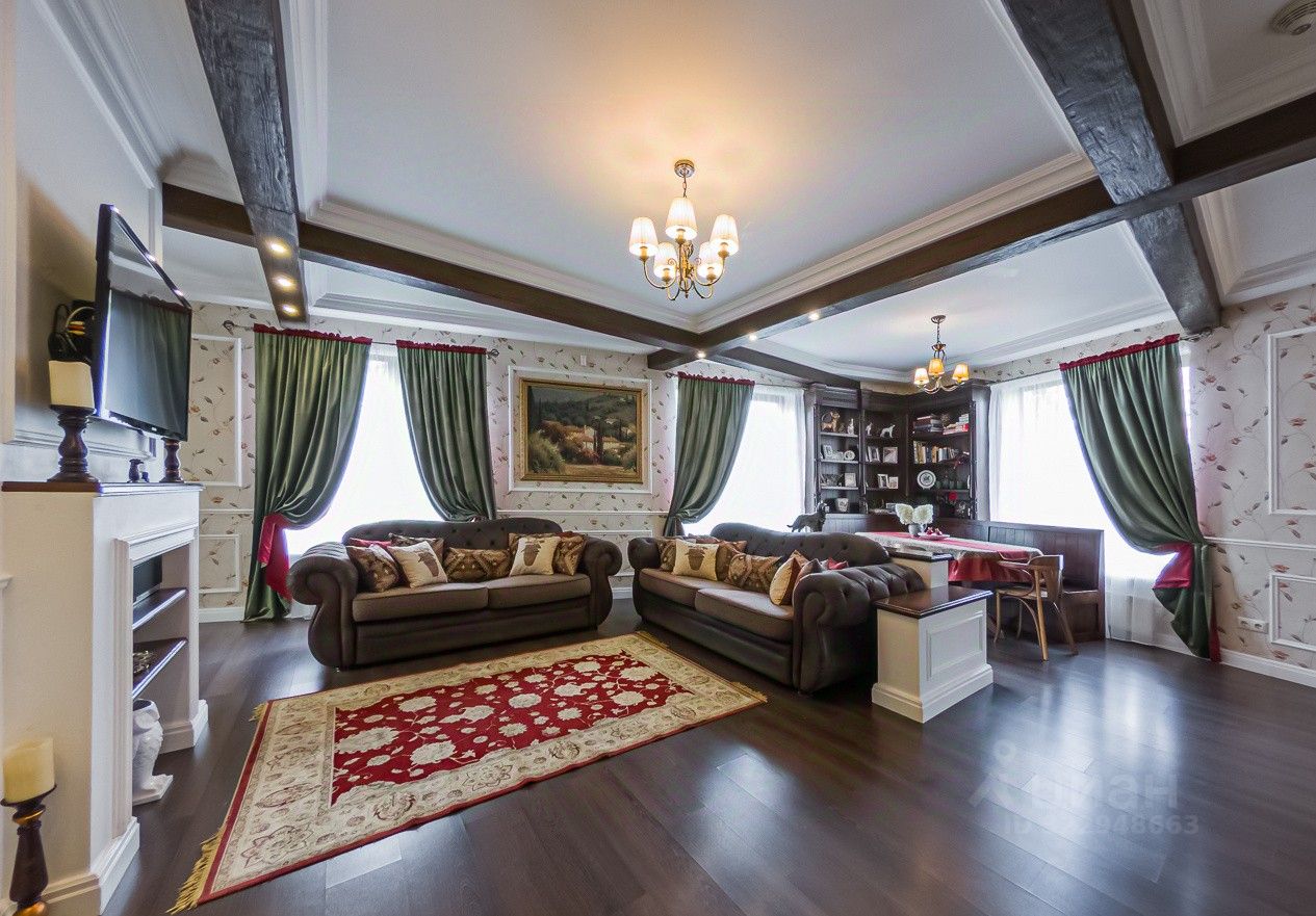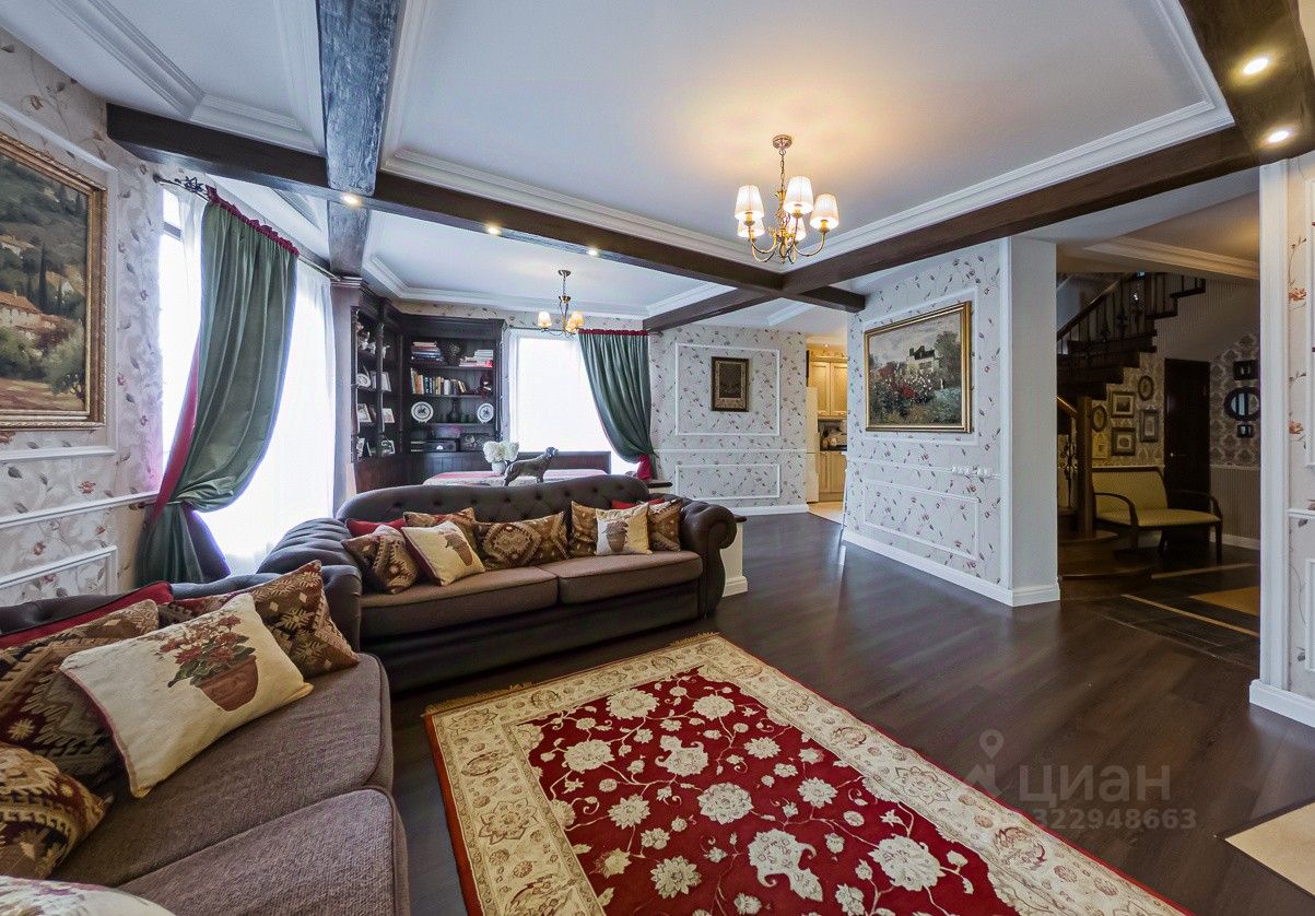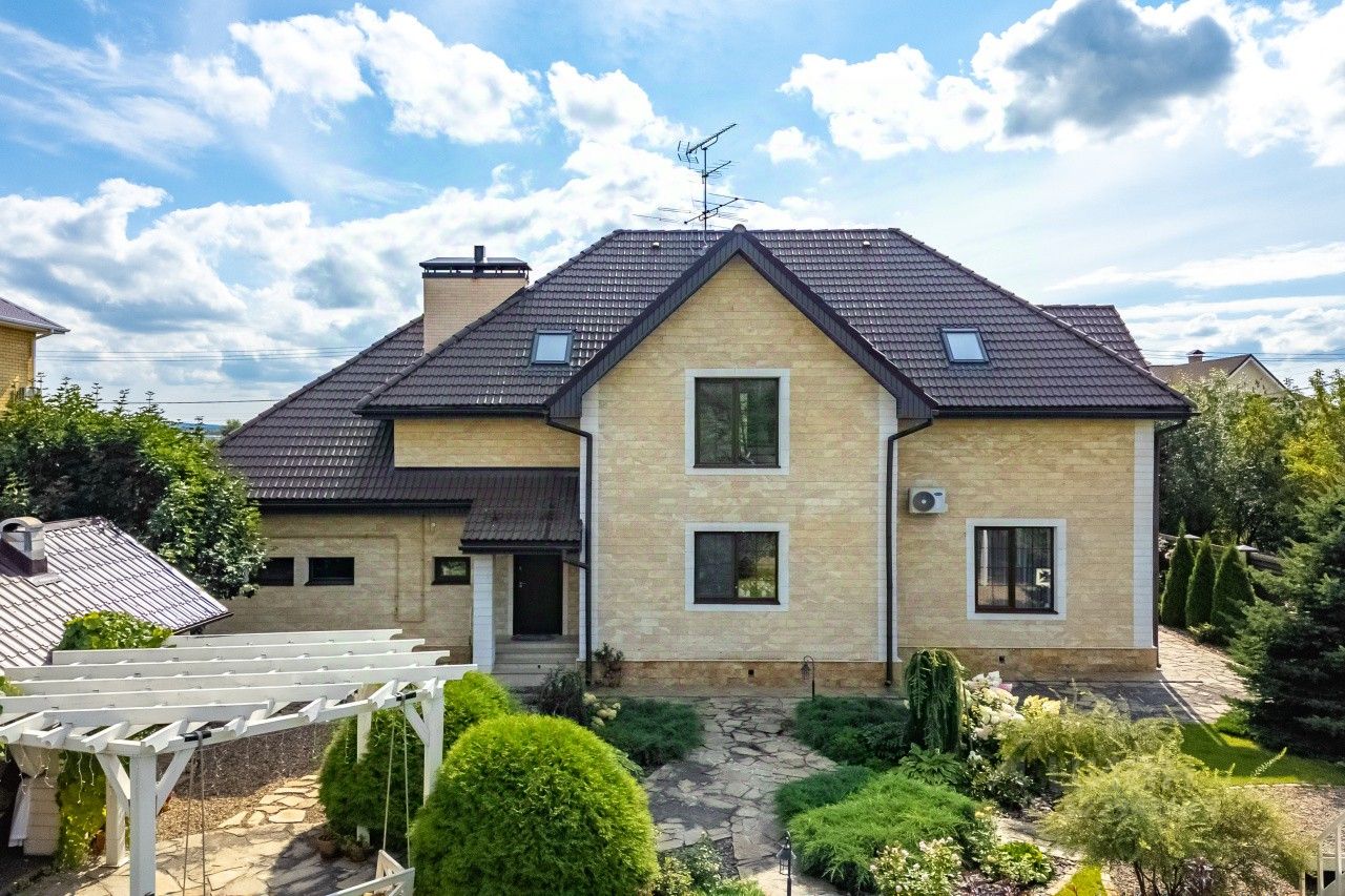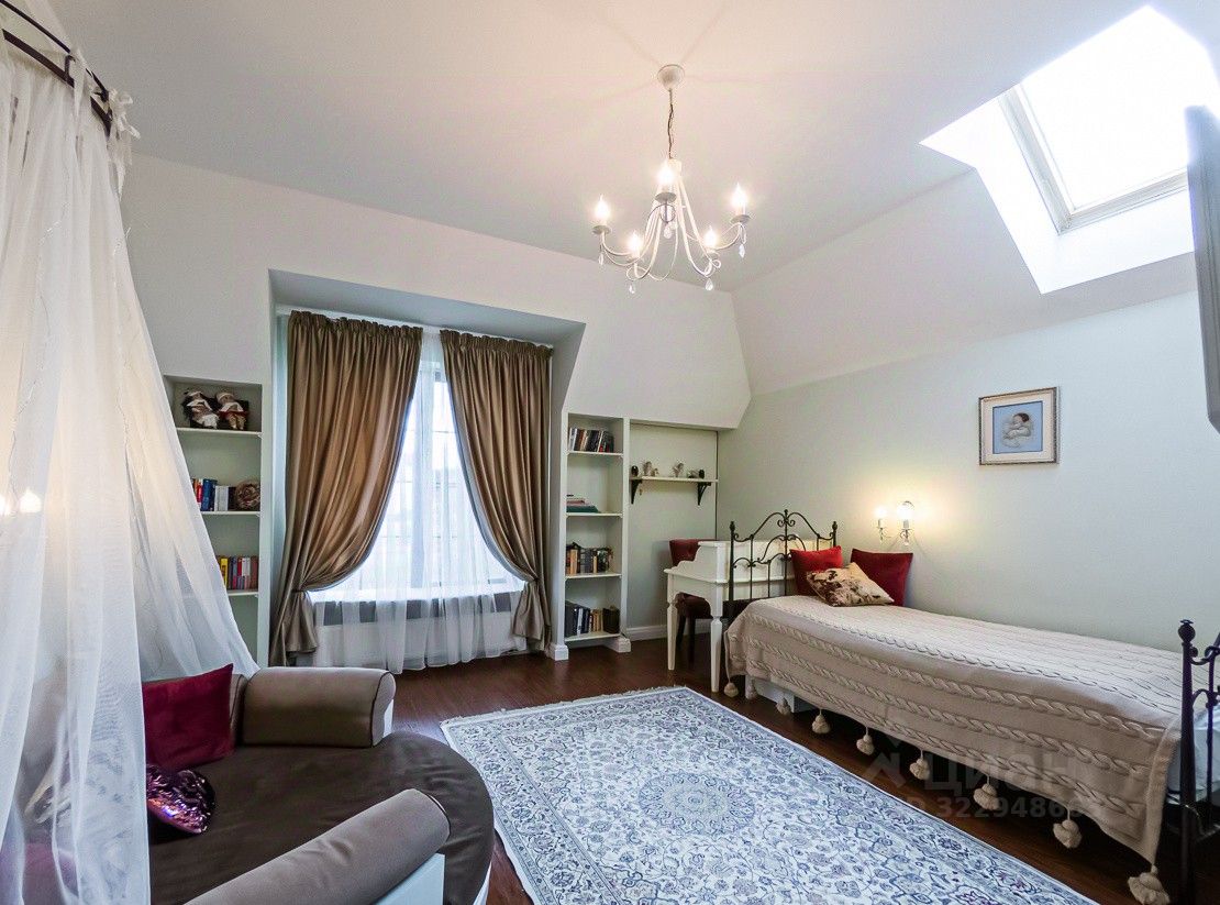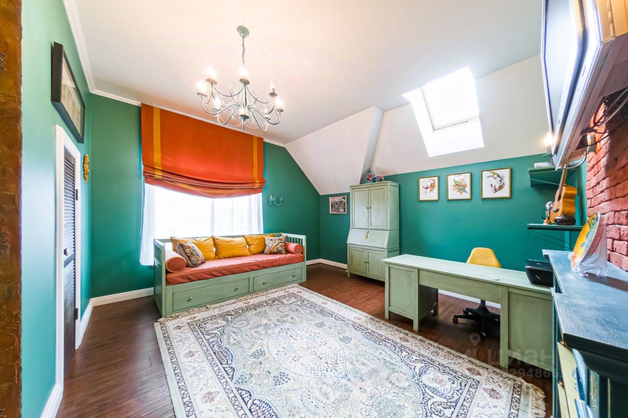 Дом построен по индивидуальному проекту с очень удобной планировкой. На первом этаже - гостиная-столовая, кухня с удобной кладовой, хозпомещения (постирочная и еще одна кладовая), гостевая комната, сауна и гостевой санузел. В гостиной есть зона с камином и местом под библиотеку - для теплых семейных вечеров. На втором этаже - 2 детские, общий санузел, родительская спальня с собственным санузлом и уютная мастерская-кабинет с шикарным видом на сад.