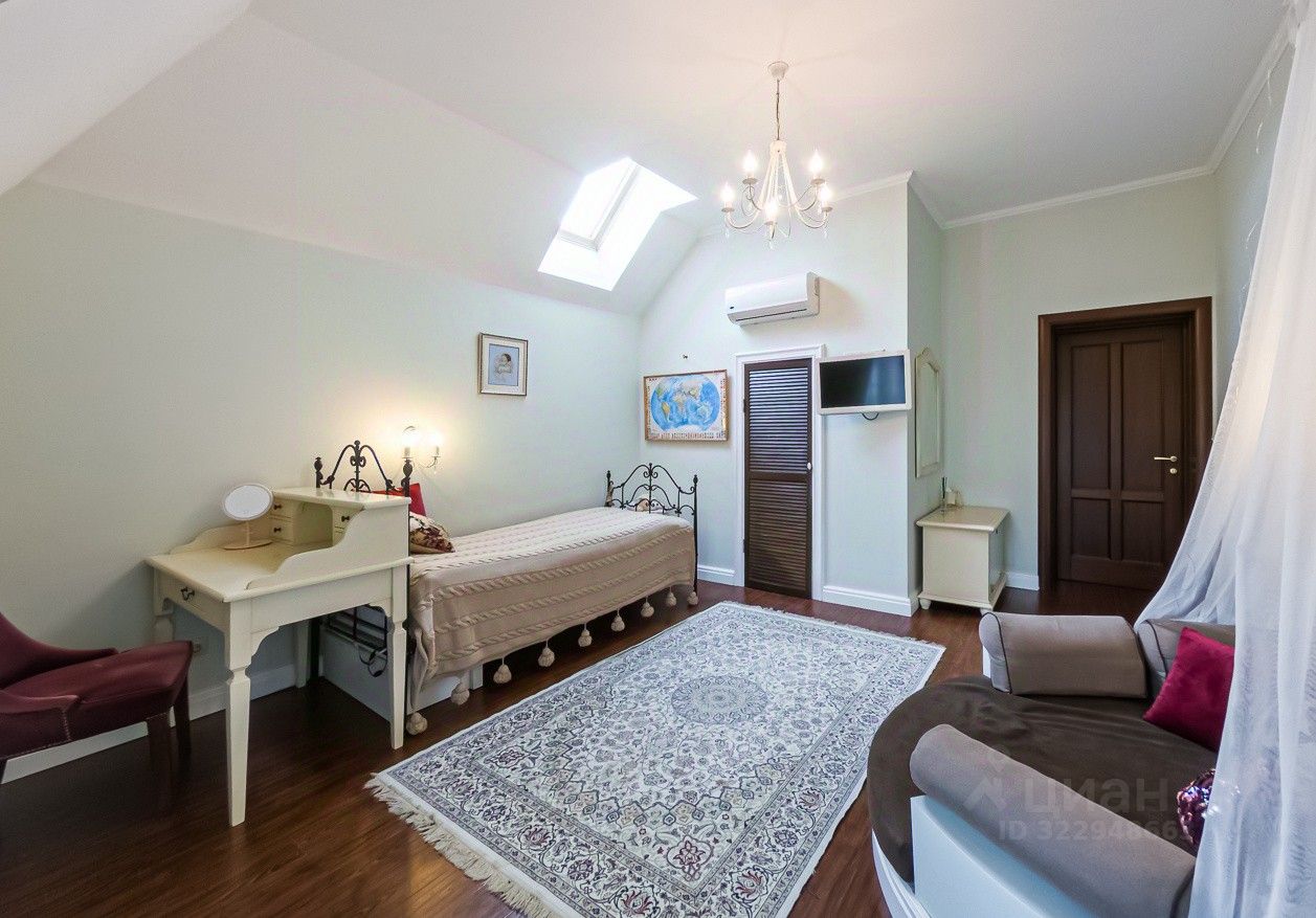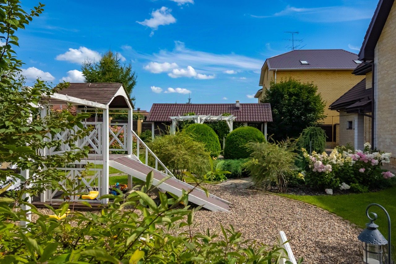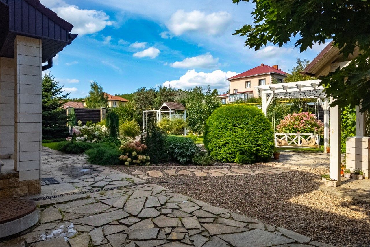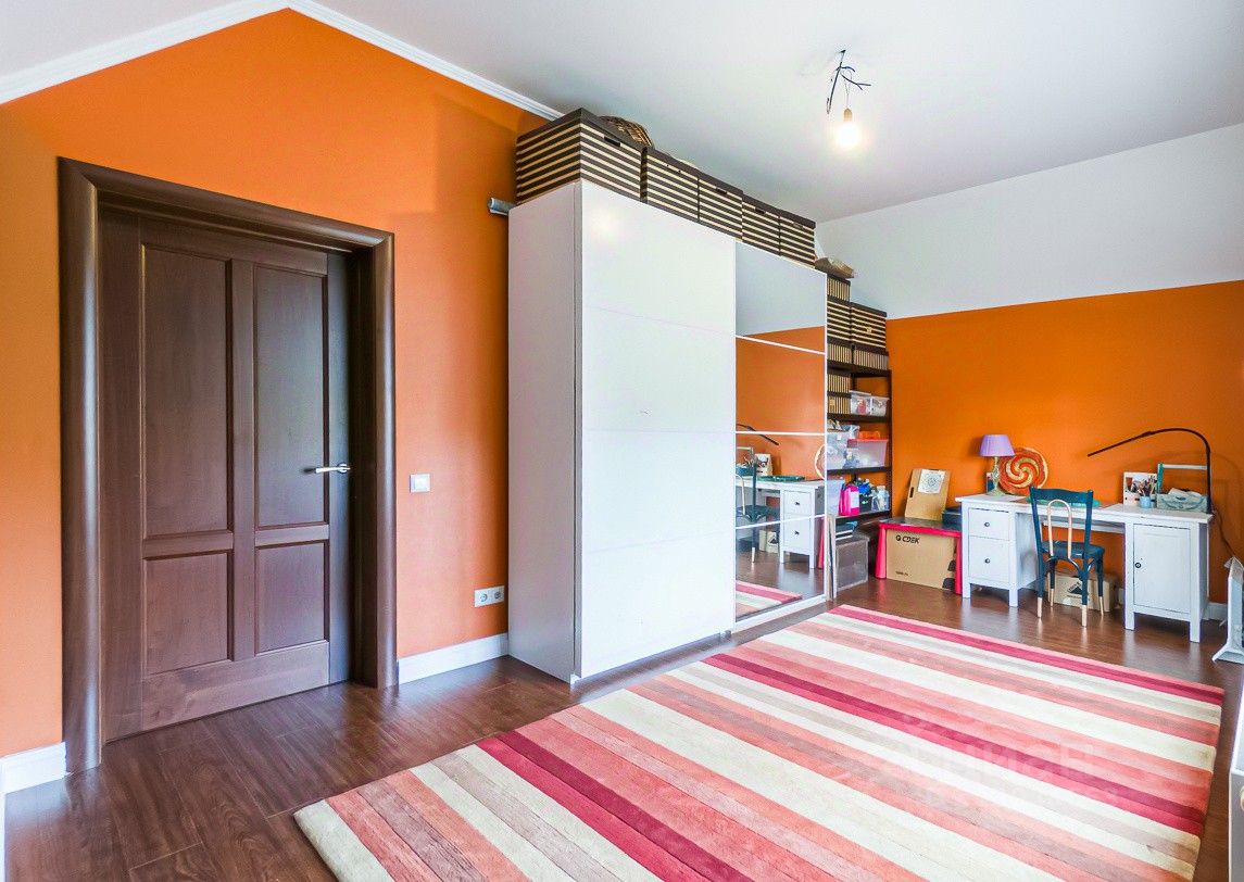 Дом построен по индивидуальному проекту с очень удобной планировкой. На первом этаже - гостиная-столовая, кухня с удобной кладовой, хозпомещения (постирочная и еще одна кладовая), гостевая комната, сауна и гостевой санузел. В гостиной есть зона с камином и местом под библиотеку - для теплых семейных вечеров. На втором этаже - 2 детские, общий санузел, родительская спальня с собственным санузлом и уютная мастерская-кабинет с шикарным видом на сад. В каждой спальне есть своя гардеробная комната. Установлена система кондиционирования воздуха. Разные сценарии освещения, дополнительно к основной системе отопления - теплый водяной пол.