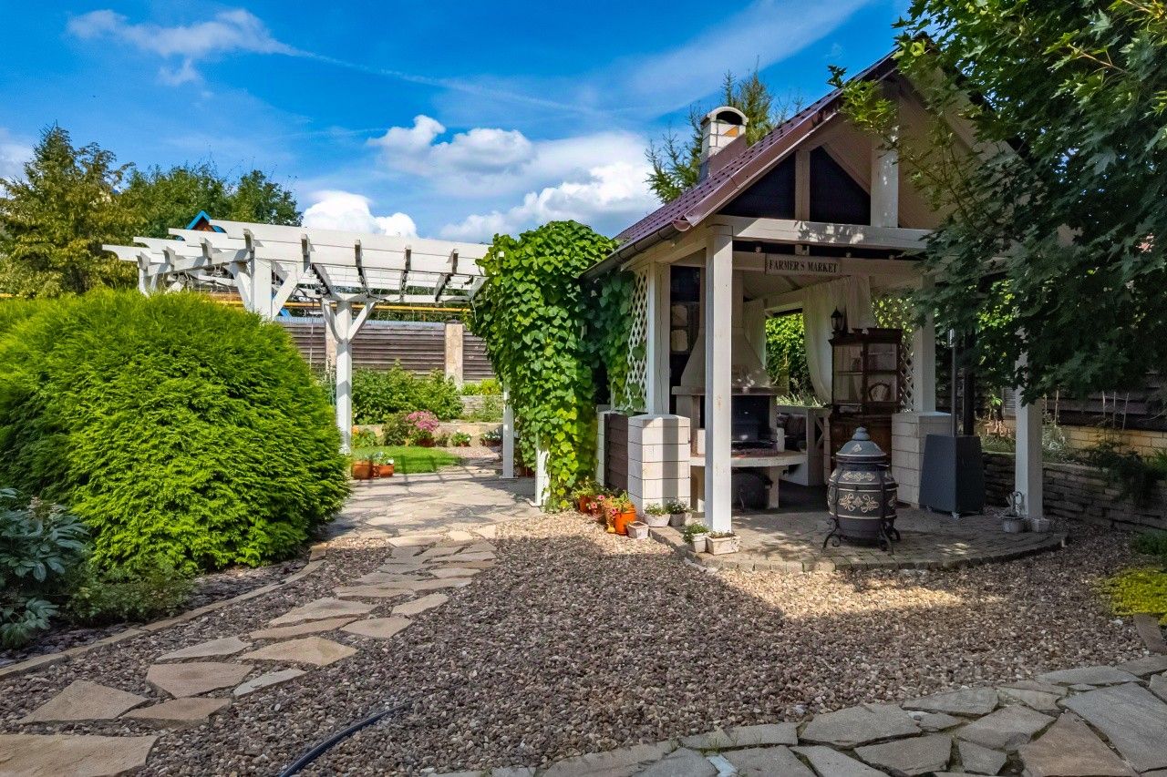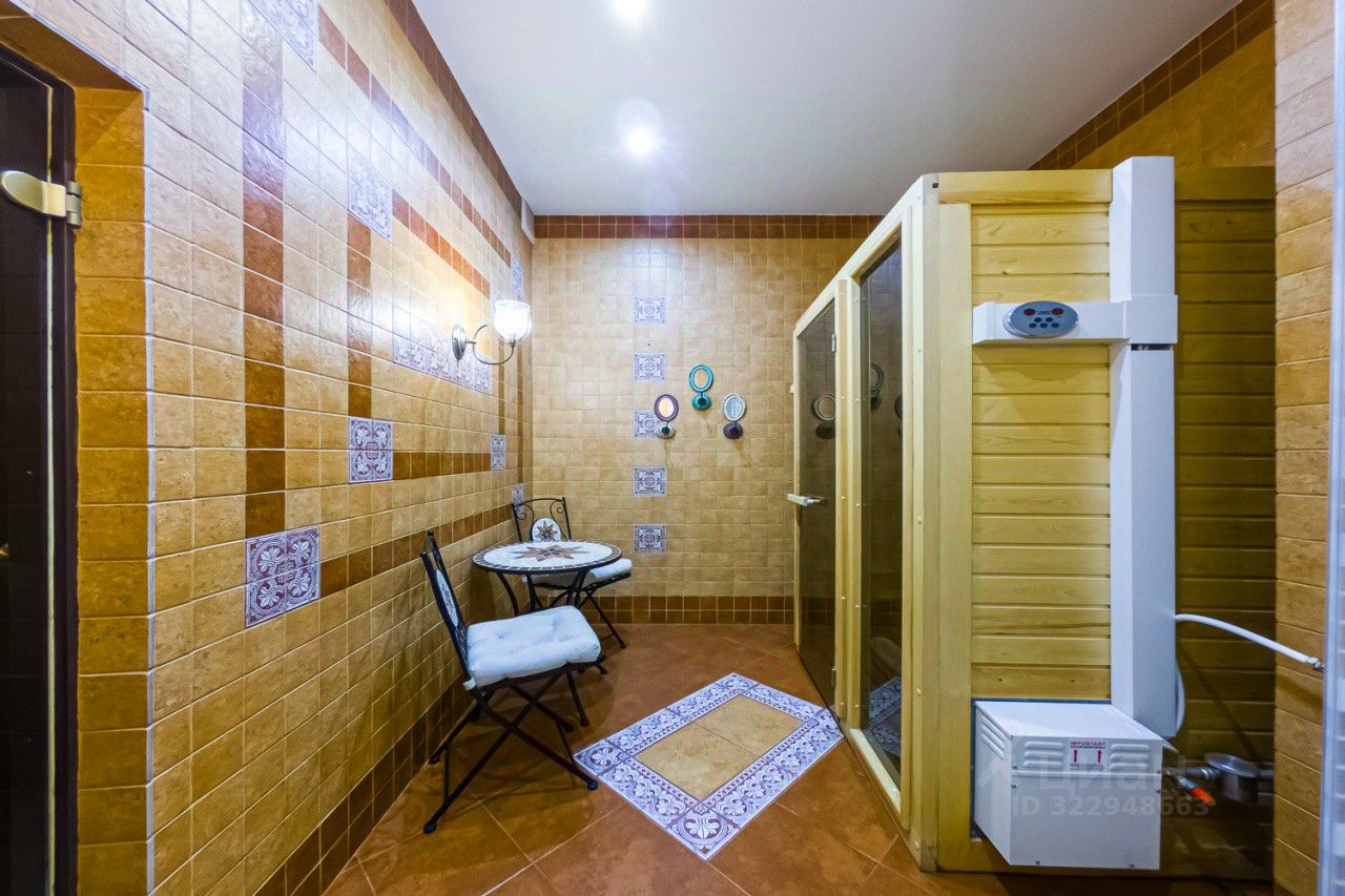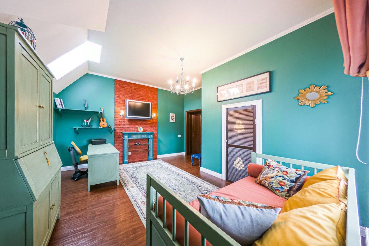 Дом построен по индивидуальному проекту с очень удобной планировкой. На первом этаже - гостиная-столовая, кухня с удобной кладовой, хозпомещения (постирочная и еще одна кладовая), гостевая комната, сауна и гостевой санузел. В гостиной есть зона с камином и местом под библиотеку - для теплых семейных вечеров. На втором этаже - 2 детские, общий санузел, родительская спальня с собственным санузлом и уютная мастерская-кабинет с шикарным видом на сад. В каждой спальне есть своя гардеробная комната. Установлена система кондиционирования воздуха. Разные сценарии освещения, дополнительно к основной системе отопления - теплый водяной пол.