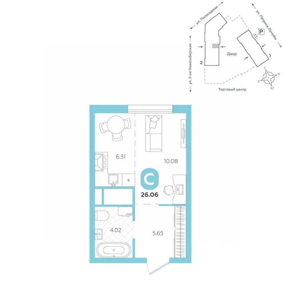 Квартира находится в ЖК ''Бодровский'' от федерального застройщика ''Паритет Девелопмент''. Это жилой комплекс комфорт-класса с современной архитектурой, расположенный в Екатеринбурге в районе улиц Патриса Лумумбы и 2-й Новосибирской. Добраться от него до центра города можно всего за 25 минут, дорога до ЕКАДа займет 12 минут. В окружении жилого комплекса есть шесть детских садов, пять школ, три больших парка, пять спорткомплексов, в том числе курортный комплекс Уктус. Квартал состоит из двух секций переменной этажности (от 14 до 24 этажей) и подземного паркинга с кладовыми, к которым можно будет спуститься на лифте. На первых этажах предусмотрены коммерческие помещения: жители смогут сделать маникюр, воспользоваться услугами ателье, выпить кофе с круассаном, не покидая своего района. Ввод в эксплуатацию в III кв. 2027 года. Территория комплекса огорожена от машин и посторонних людей. Озеленение с многолетними растениями и деревьями создает ощущение близости к природе. Двор наполнен всем необходимым: песочницы и качели для самых маленьких, интерактивная башня для детей постарше, воркаут-зона и места для отдыха. На всей территории реализована безбарьерная среда. В парадных выполнен авторский ремонт. За счет панорамного остекления и 4-метровых потолков там всегда много естественного света. Предусмотрены колясочные с местами для хранения спортинвентаря и креплениями для велосипедов. В проекте представлены студии, классические одно- и двухкомнатные варианты, а также двух-, трех- и четырехкомнатные квартиры в евроформате площадью от 25,32 до 76,65. Все планировки — функциональные и подходящие новоселам как с детьми, так и без них. Есть варианты с лоджиями, где можно организовать дополнительное пространство для отдыха, спорта или работы, а еще квартиры с мастер-спальней, гардеробной, двумя санузлами. В каждой предусмотрена вытяжная вентиляция с естественным побуждением, счетчики с телеметрией и корзины для кондиционеров. Характеристики квартиры: этаж - 12 количество комнат - 1 номер помещения - 267 площадь квартиры - 26,06 кв.м Чтобы сэкономить время и деньги, можно приобрести квартиру сразу с ремонтом от застройщика. На выбор 3 конфигурации: базовый, с кухонным гарнитуром, с кухонным гарнитуром и другой мебелью - в светлом и темном оттенках. Ремонт можно включить в ипотеку.