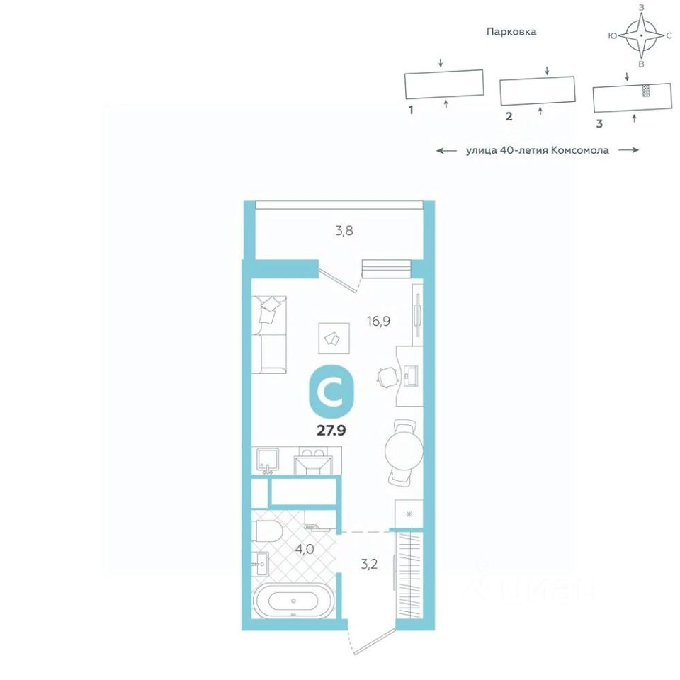 Эргономичная квартира-студия с лоджией и перспективой роста в цене — отличный выбор для тех, кто делает первые шаги к самостоятельной жизни. Общая площадь квартиры 27,9 кв.м., и ее умная планировка позволяет создать атмосферу, полностью отражающую ваши стиль и предпочтения.