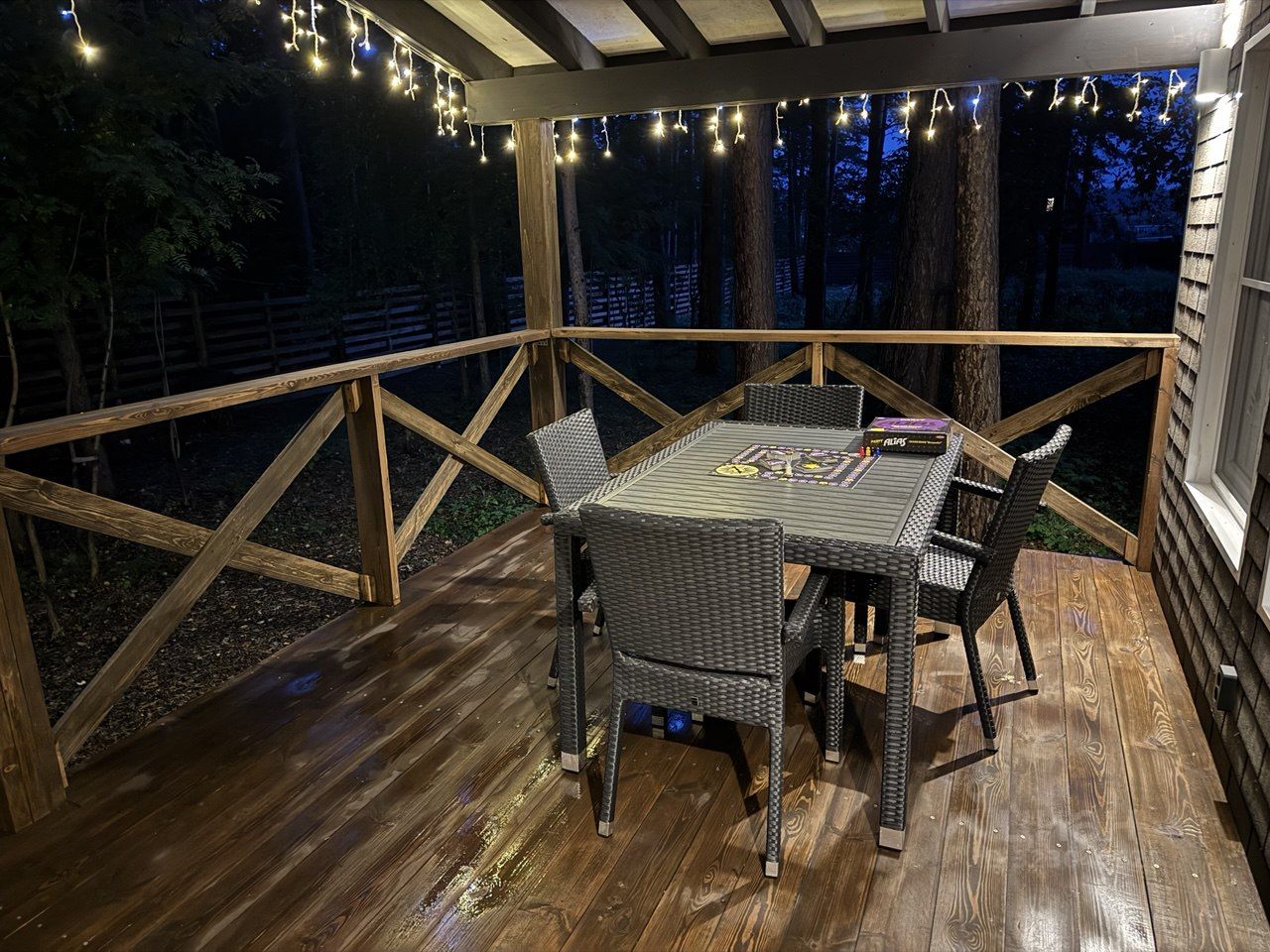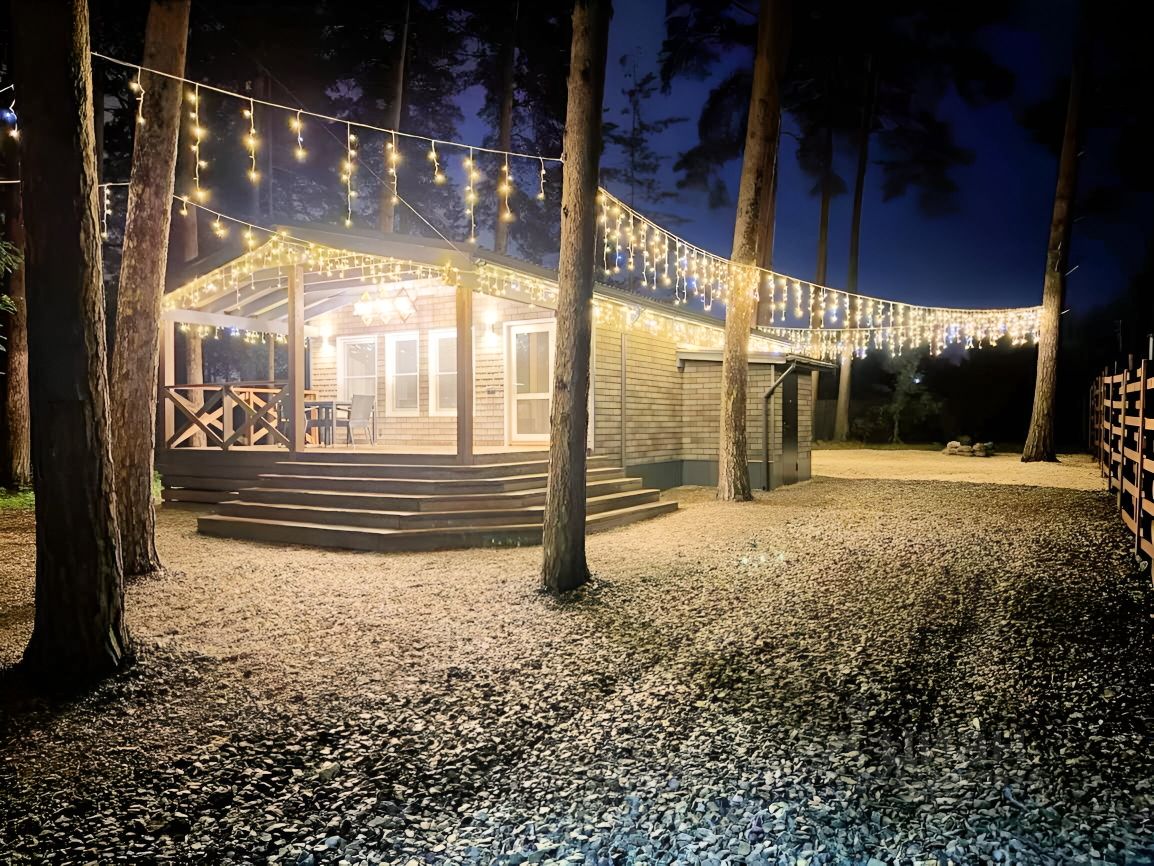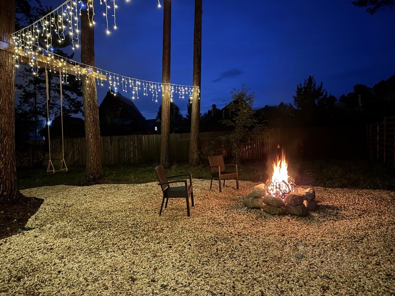 Пространства для Отдыха и Встреч: На участке обустроены великолепные зоны для вашего досуга: * Просторная веранда, идеальная для утреннего кофе или вечерних посиделок с видом на лес. * Костровая и мангальная зоны, чтобы проводить незабываемые вечера с друзьями и близкими. * Атмосферная подсветка дома и участка, которая превращает вечера в настоящую сказку.