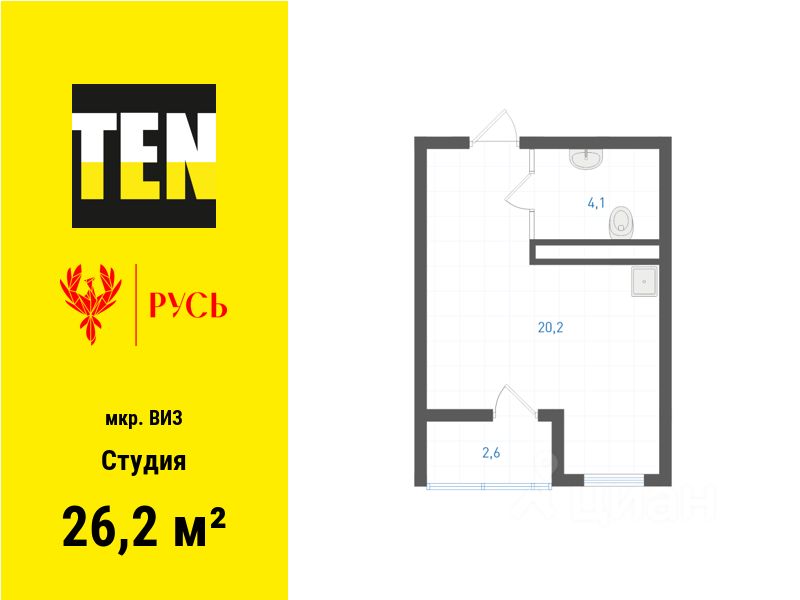 Общая площадь26,2 м2