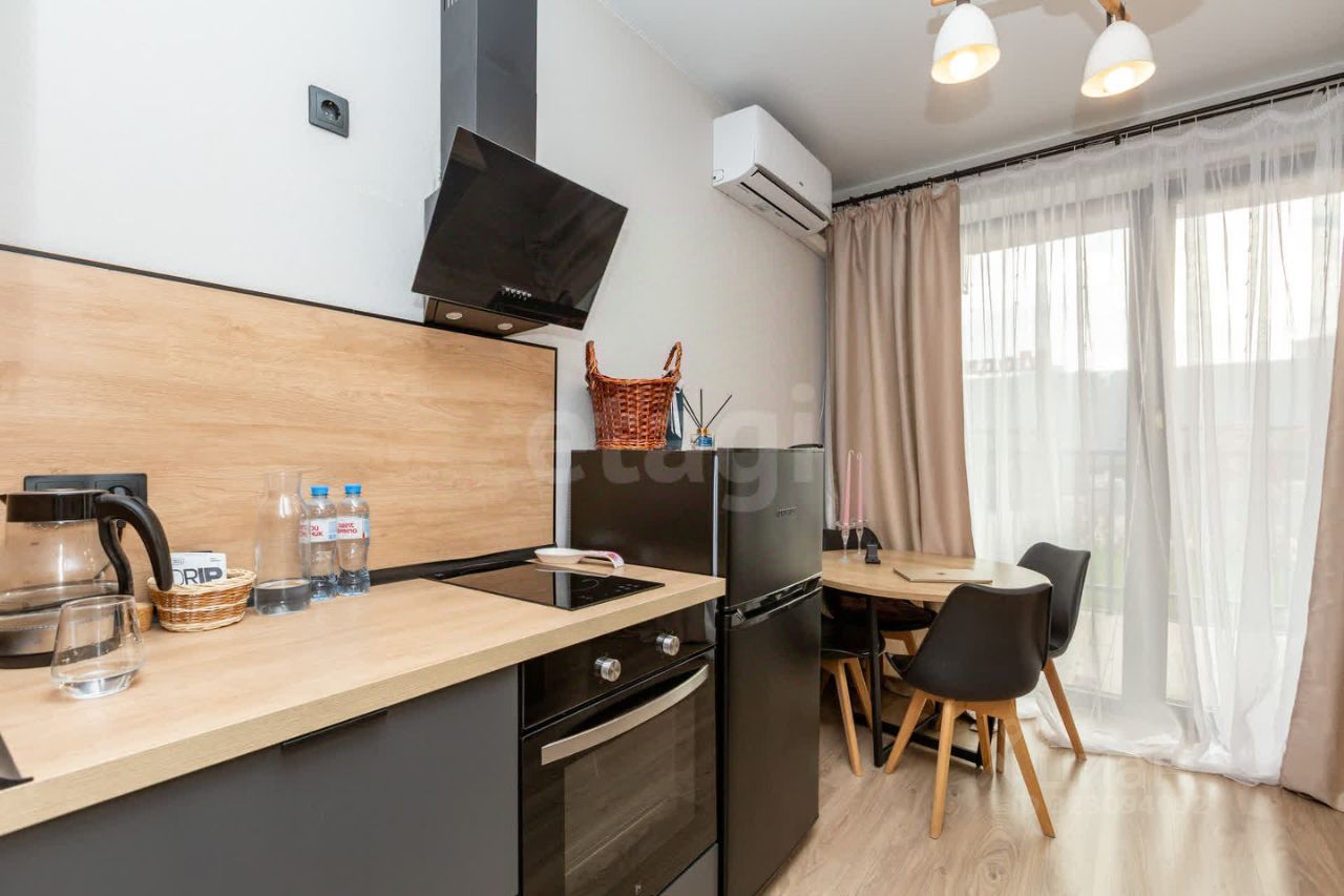 Квартира очень светлая, так как имеет 2 отдельных окна, площадь разделена на несколько зон: коридор со своей встроенной гардеробной, кухня с обеденным столом, просторная ванная вмещает в себя еще постирочную, зона приготовления пищи, зона отдыха на диване, 2х спальная кровать, своя терраса, которая регулируется дополнительным замком Остается все: кухня со всей встроенной техникой (посудомоечная машина, варочная индукционная плита, духовой шкаф, микроволновка), холодильник, каждый шкаф оснащён доводчиком, стиральная машина, телевизор, зеркало в пол, шторы блек аут и тюль, холодильник, 4 стула + стол.