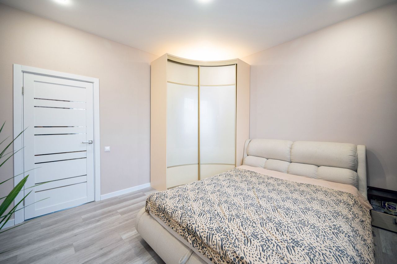 Соседи доброжелательные, проживают круглогодично. Приятным бонусом новому обладателю в спальне остаётся большой, вместительный шкаф и двухспальная кровать.