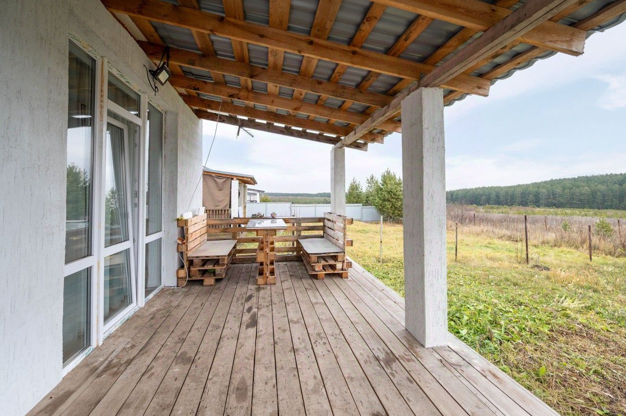 Преимущества: - В доме выполнен качественный ремонт: на полу ламинат, на стенах виниловые обои, на окнах- стеклопакеты. - Большая кухня-гостиная 26 м2, с выходом на террасу, окна панорамные, поэтому всегда светло и солнечно. - 2 изолированные спальни (14,1 м2, 13,8 м2) - Санузел совмещённый - Котёл 9 Квт, есть водонагреватель, разводка под стиральную и сушильную машины, здесь же люк для выхода на чердак - Есть парковка для автомобиля - По периметру дома установлены трубы для забора