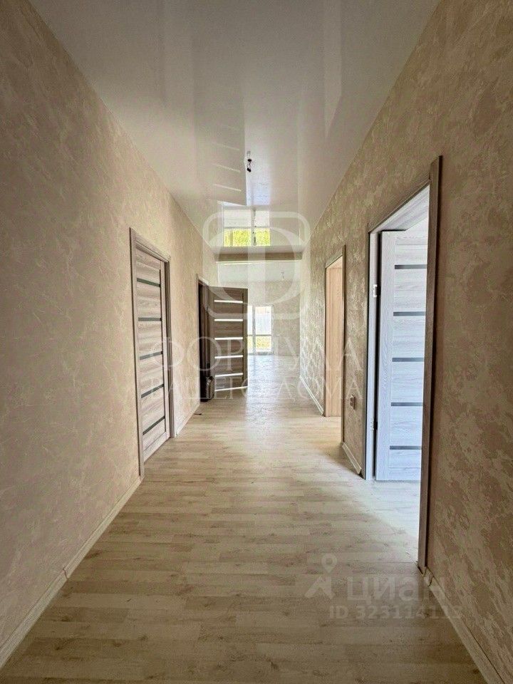 На полу керамогранит, на стенах обои, межкомнатные двери, натяжные потолки со светильниками, в санузле плитка, в котельной газовый котел, скважина на улице.