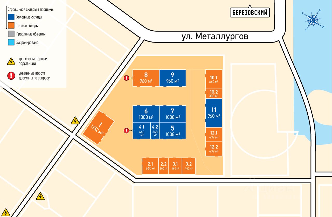 Доступны варианты холодных складов в этой же локации — номера указаны на генплане в галерее.