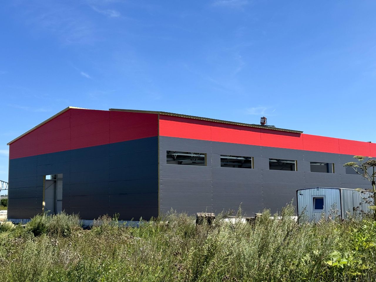 Каркас металлоконструкции ЛСТК. Кровля и ограждение (сэндвич-панели 150 мм). Окна - одинарный глухой стеклопакет. Секционные ворота с ручным приводом, 4 шт. Бетонный пол (топпинг, 200 мм). Отопление — наружный водогрейный котёл на сжиженном газе + система Вулкан внутри.