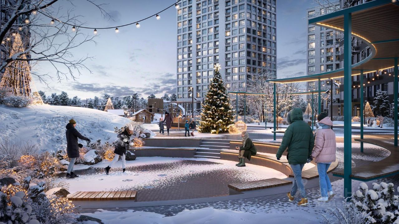 Благоустроенные дворы. Наполнение двора детально продумано, с учетом потребностей каждого жителя. Детские площадки для разных возрастов, зоны отдыха, зеленые аллеи и пешеходные дорожки. В центре двора предусмотрен амфитеатр для общих встреч жителей и больших мероприятий. Собственная сервисная компания 24/7 поддерживает чистоту территории жилого квартала.