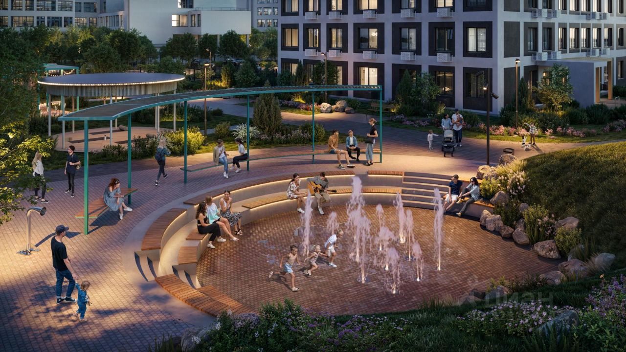 Благоустроенные дворы. Наполнение двора детально продумано, с учетом потребностей каждого жителя. Детские площадки для разных возрастов, зоны отдыха, зеленые аллеи и пешеходные дорожки. В центре двора предусмотрен амфитеатр для общих встреч жителей и больших мероприятий. Собственная сервисная компания 24/7 поддерживает чистоту территории жилого квартала.