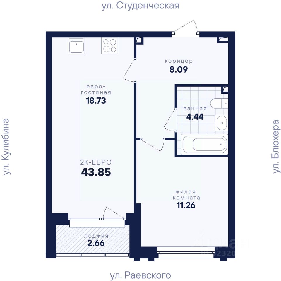 продам 1-к, Блюхера, гп 77 890 000 ₽