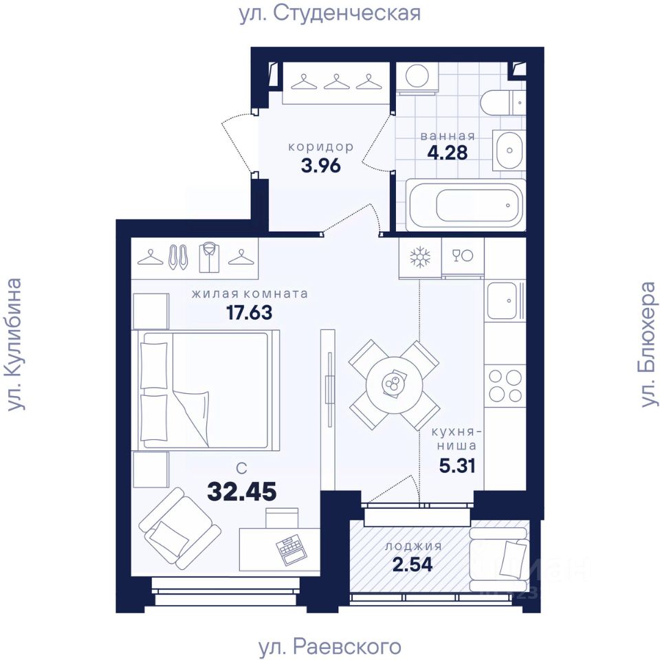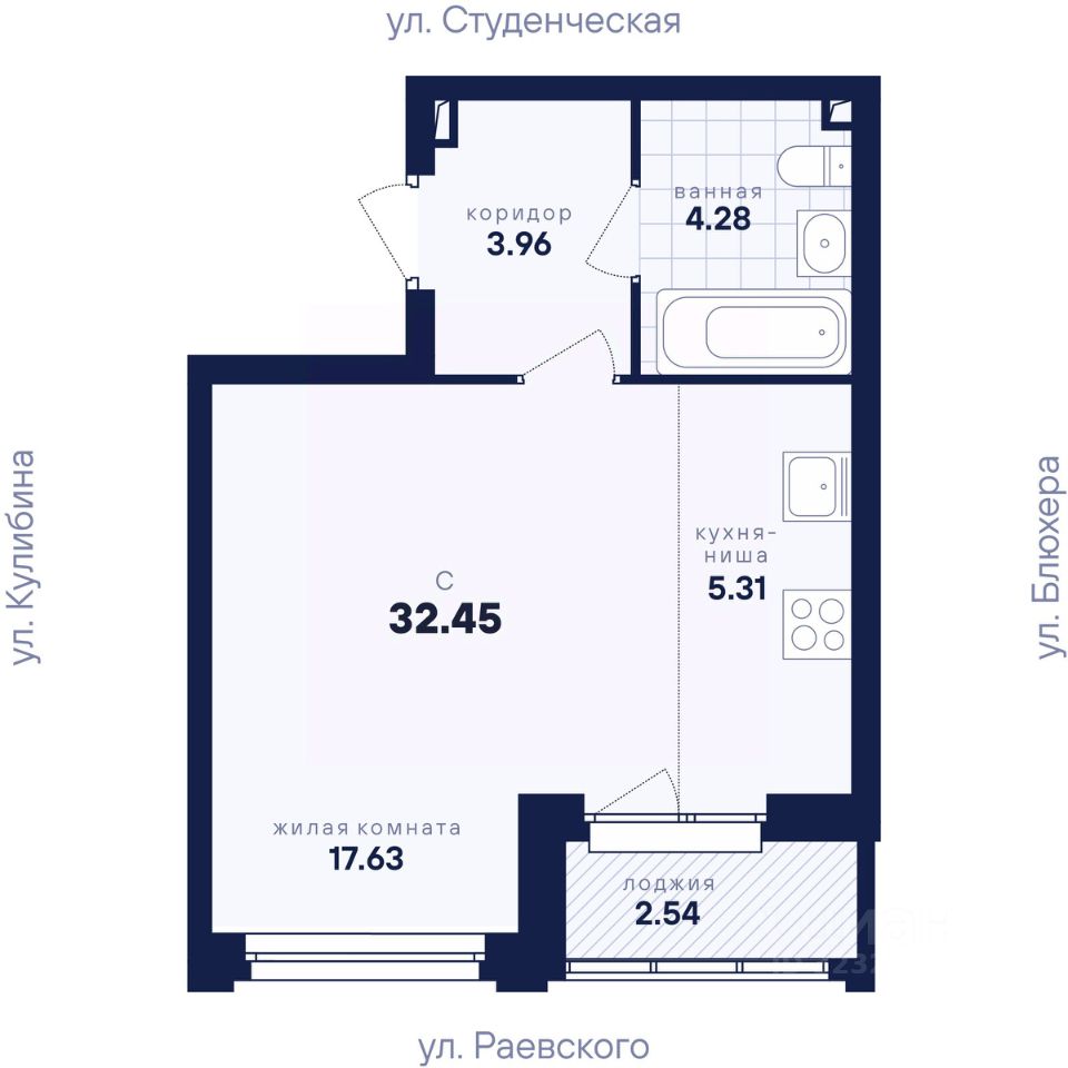 продам 1-к, Блюхера, гп 76 950 000 ₽