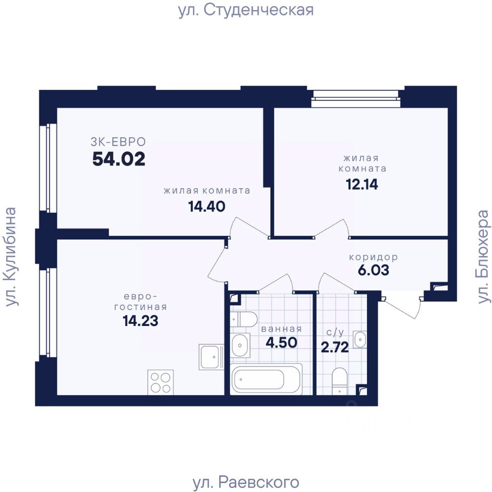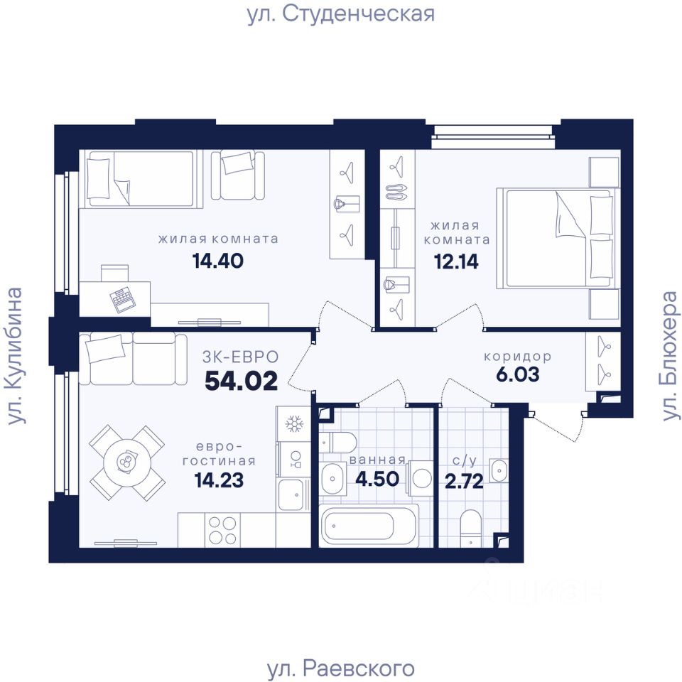 продам 2-к, Блюхера, гп 78 960 000 ₽