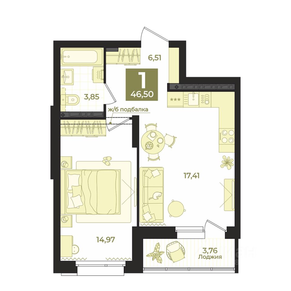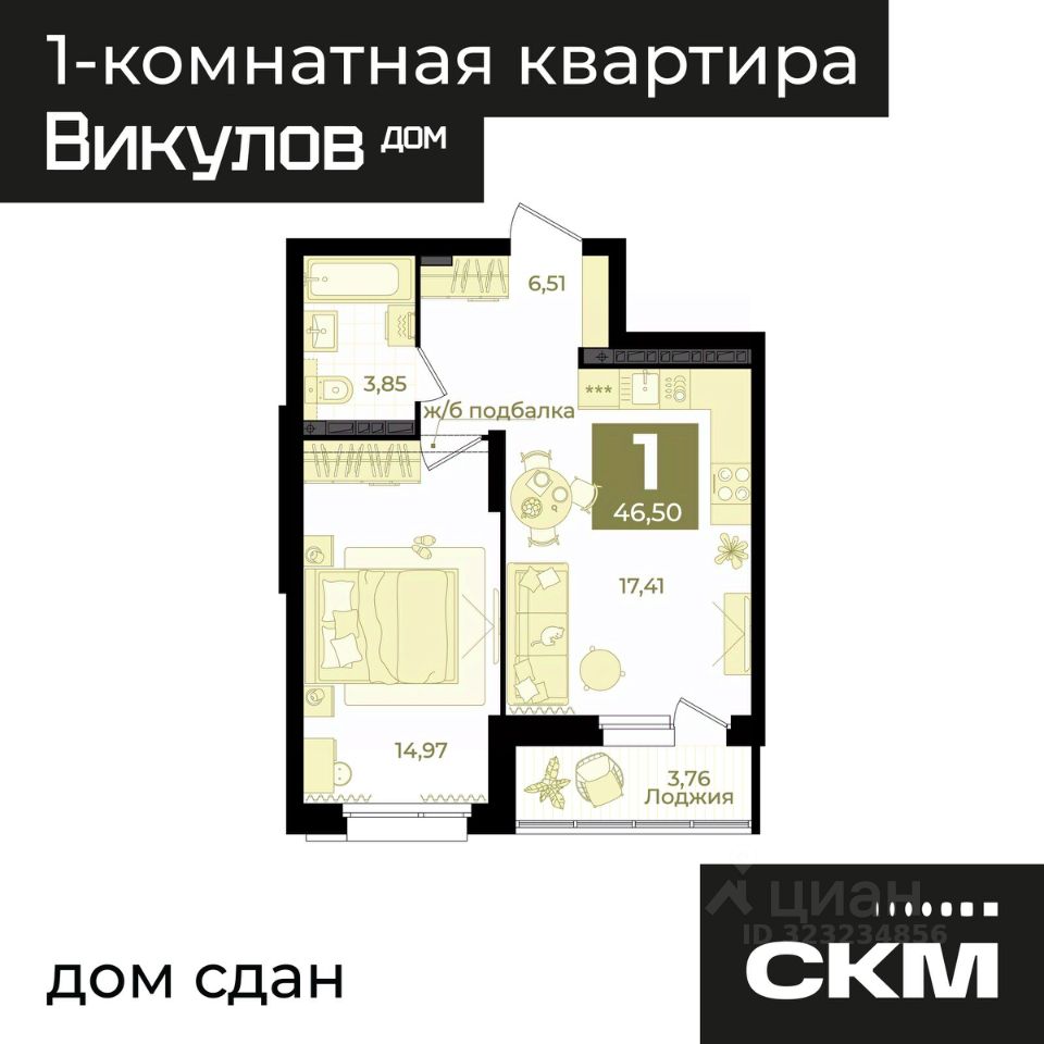 Общая площадь46,5 м2