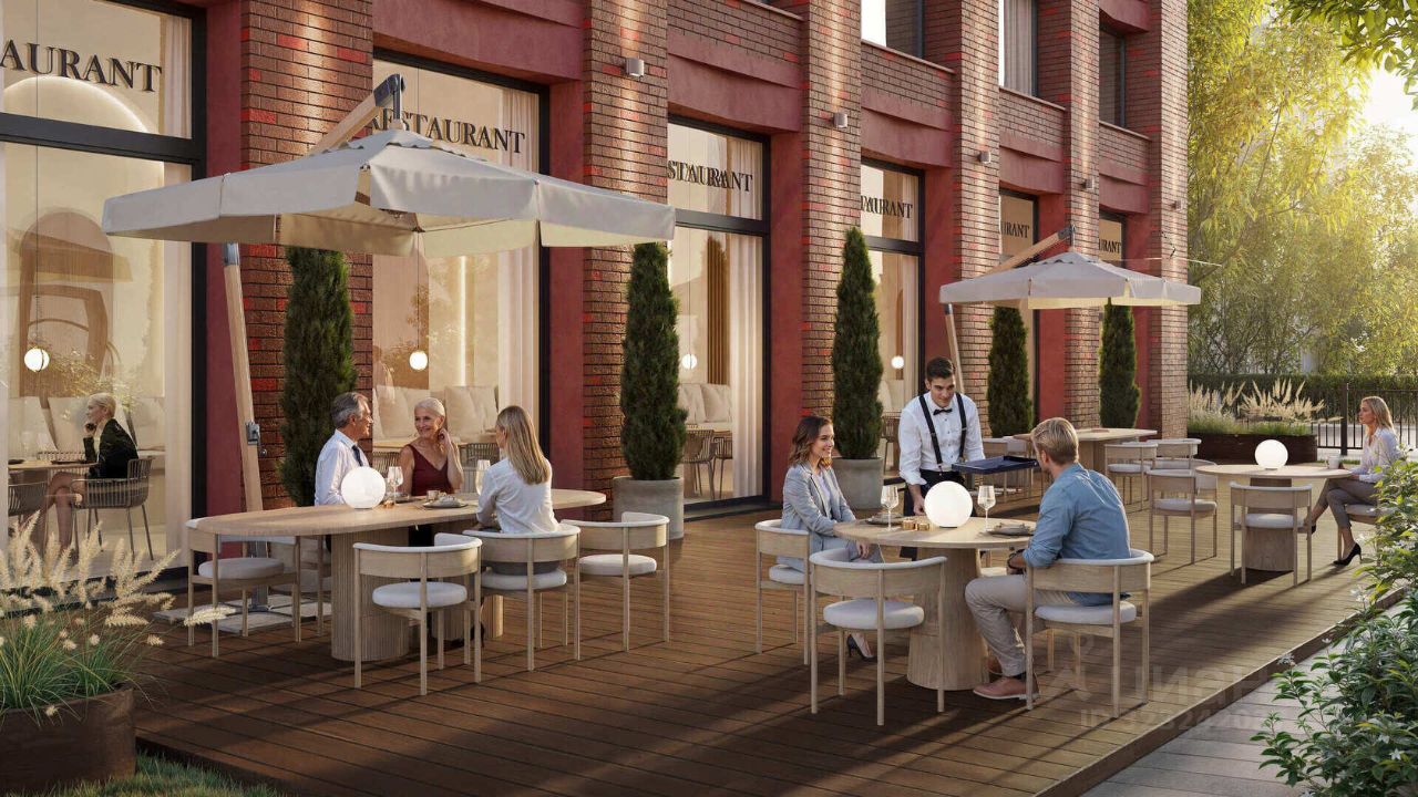 Одной из ключевых особенностей комплекса является приватная лаунж-терраса на крыше, где созданы различные зоны отдыха: летний коворкинг, уютная детская площадка, веранда для йоги, пергола с качелями, зона для воркаута и шезлонги для релаксации.