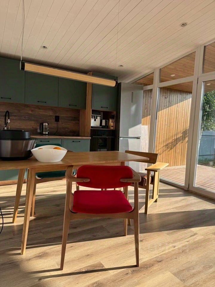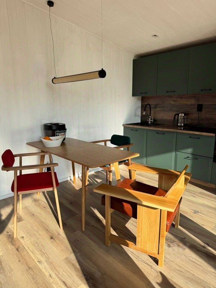 Пpeдставьте: утро на террасе с чашкой кофе, за калиткой — молодой сосновый лес , а в 5 минутах пешком — озеро для купания и рыбалки . Вечером — семейные ужины у каменного очага под открытым небом. Что внутри