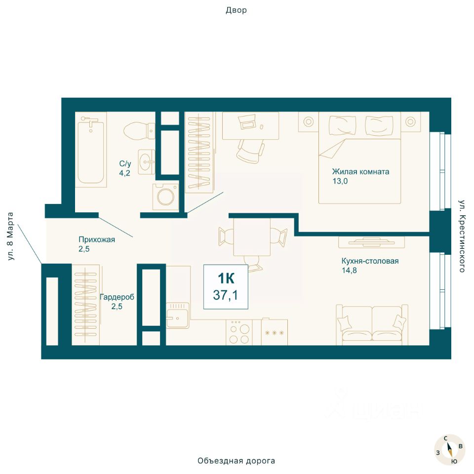 продам 1-к, 8 Марта, 1977 753 900 ₽