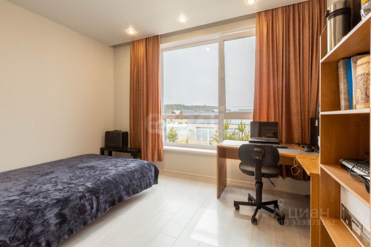Сдается в аренду уютный, красивый, светлый двухэтажный коттедж в тихом месте, недалеко от Екатеринбурга, в охраняемом КП Европа-2. Дом сдается только семье . В доме большая кухня-гостиная, кабинет гостевая и 3 спальни. На первом этаже расположены: - просторная кухня гостинная 33 кв.м с выходом на террасу 30 кв.м, установлены огромные панорамные окна, которые делают кухню- гостиную более уютной - комната с выходом на террасу -14 кв.м., прекрасно подойдет под гостевую или кабинет - санузел с ванной, унитаз с инсталяцией, раковина с тумбой - хоз комната с бойлером и коммуникациями. На второй этаж ведет лестница из дерева. Второй этаж: - 3 просторные спальни 17,16,13 кв.м с панорамными окнами, -большой санузел с окном 14 кв.м.