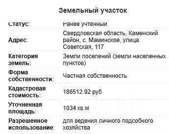 Продaeтся зeмельный участок с. Мaминскoе, ул. Совeтская, 117