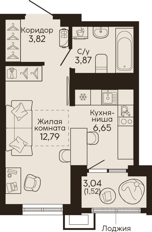 продам 1-к, Челюскинцев, 13а/2 стр.7 510 000 ₽
