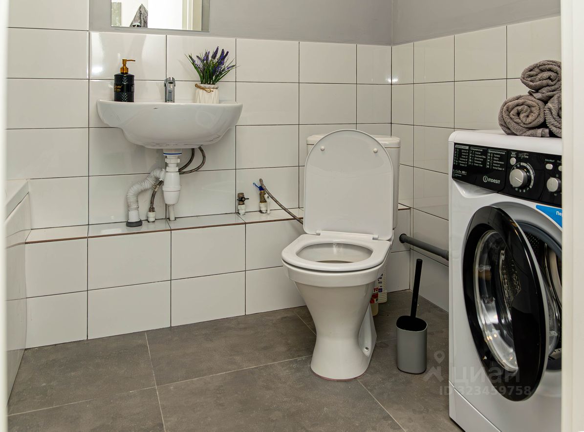 - Современная сантехника в отдельном санузле со стиральной машиной.