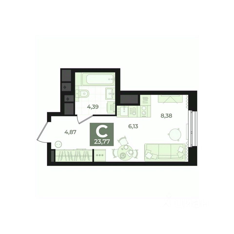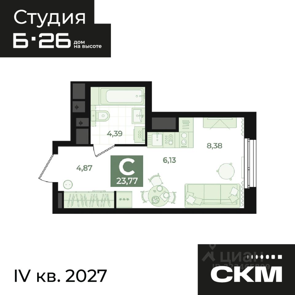 Общая площадь23,77 м2