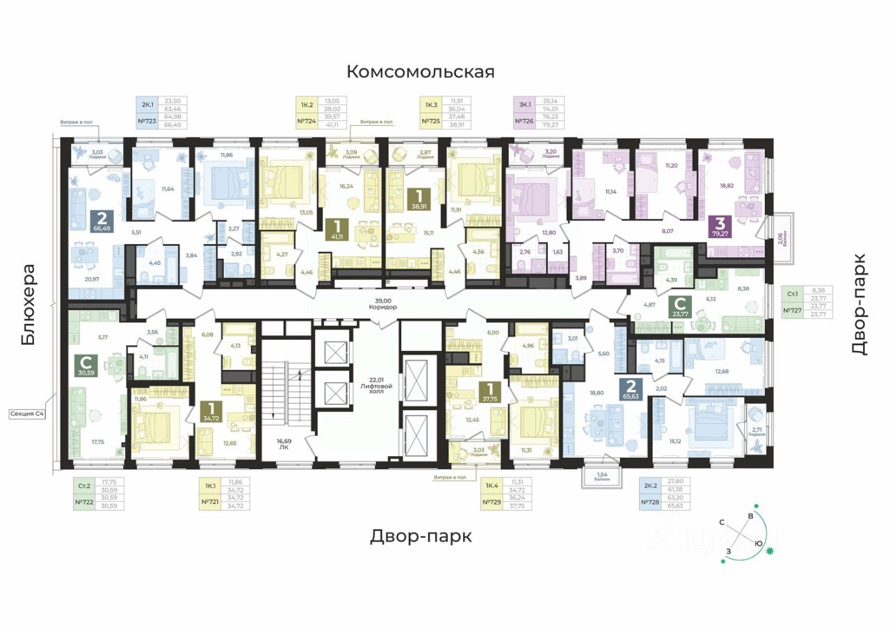 продам 1-к, Блюхера, 265 980 000 ₽