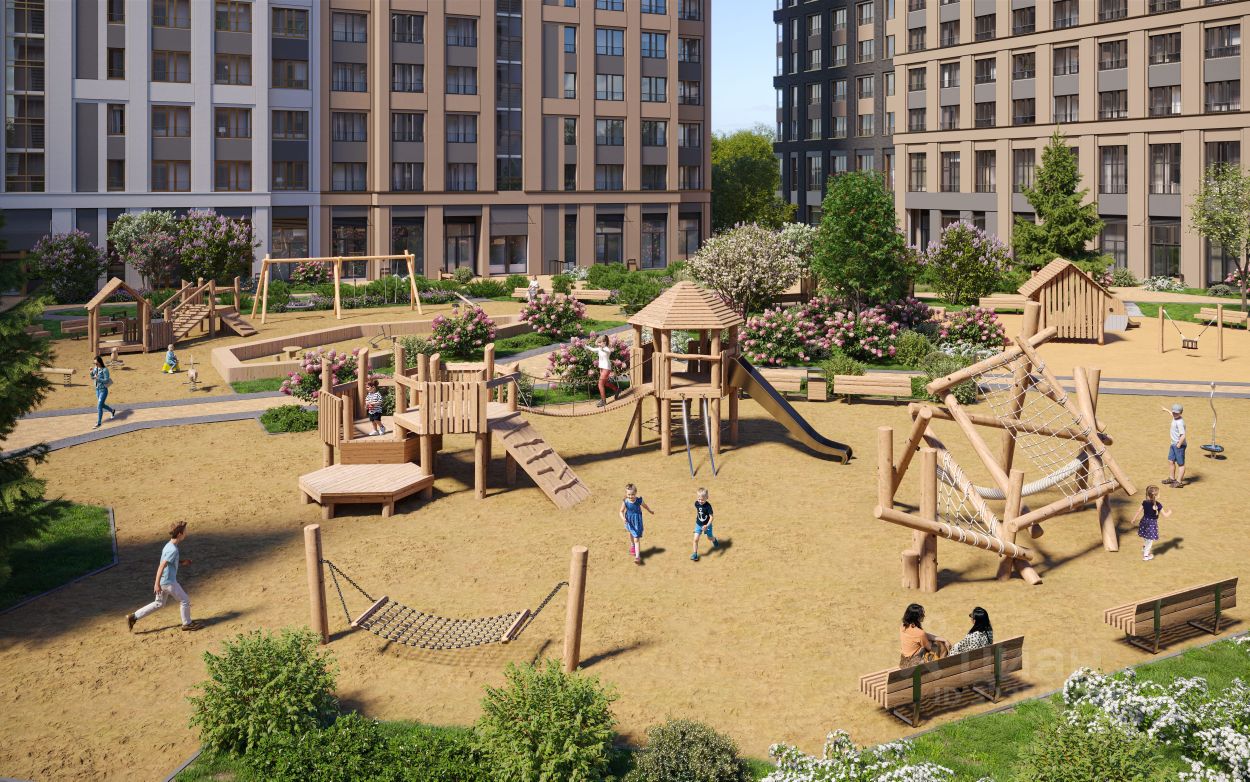 На территории квартала планируется: видеонаблюдение 24/7, подземный паркинг с доступом на лифте, кладовые, велодорожки, многоуровневое озеленение, workout зоны для уличного фитнеса, детские игровые комплексы в эко-стиле. На первых этажах будут располагаться торговые галереи.
