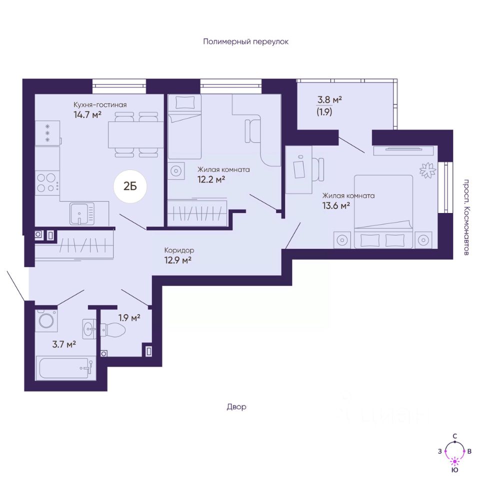 Общая площадь60,9 м2