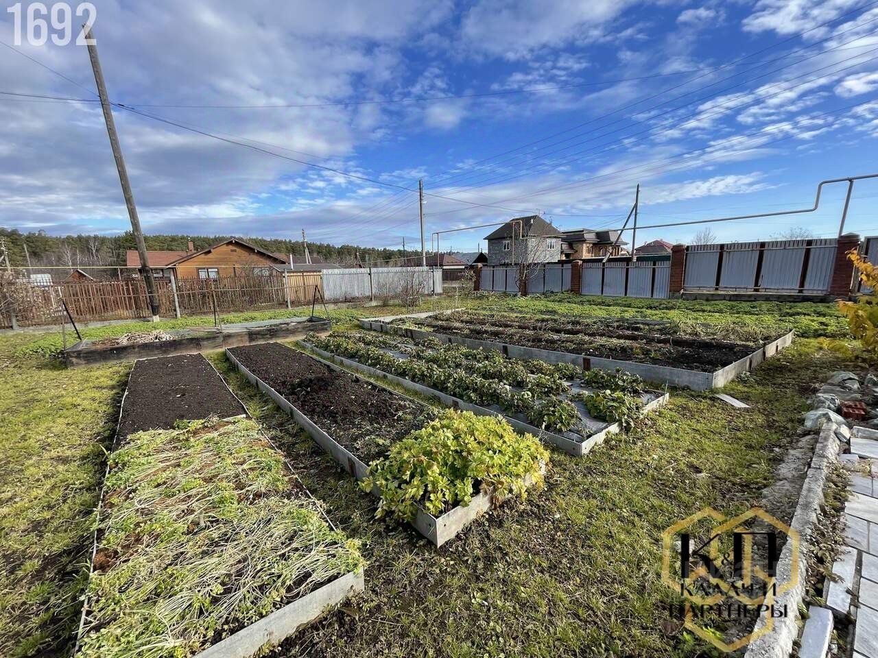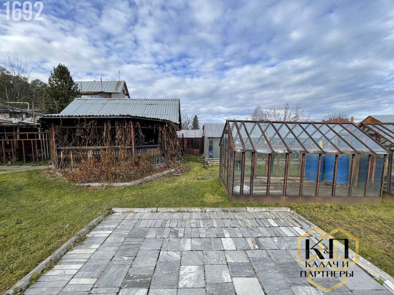 Участок разработан и очень ухожен. Имеются аккуратные грядки и клумбы, 2 большие теплицы, а также хозяйственные постройки. Участок огорожен забором.
