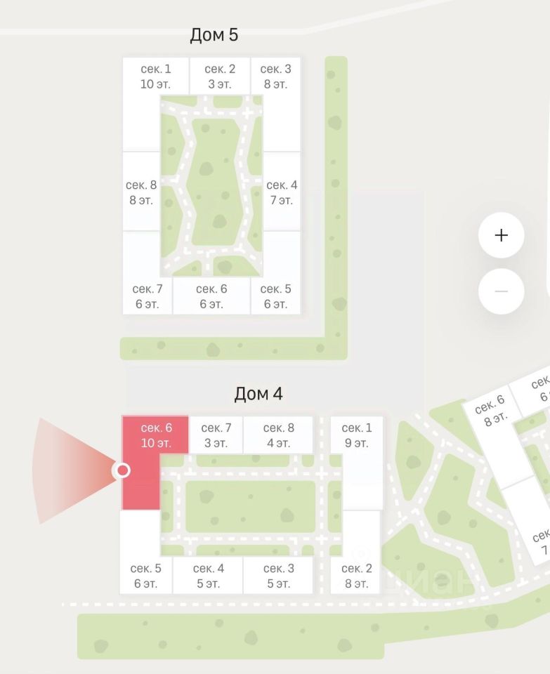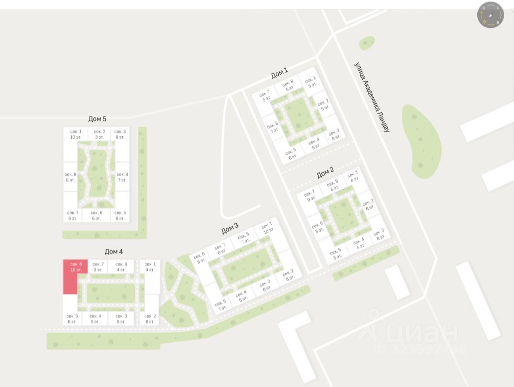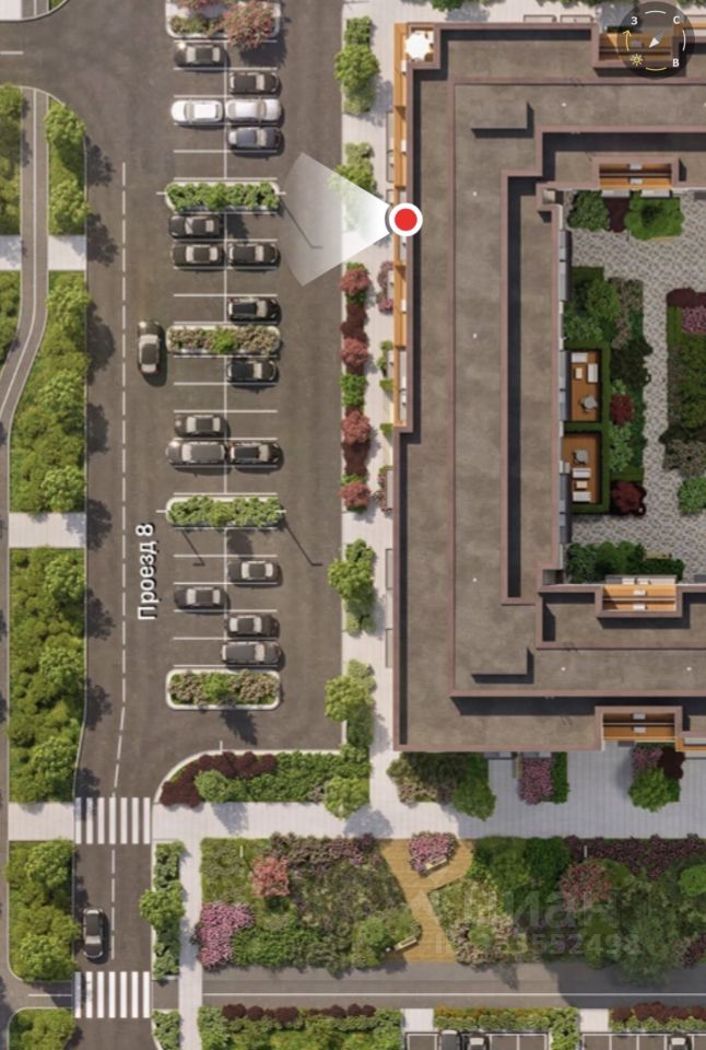 Ключевые преимущества: + Отсутствие застройки перед окнами. Согласно генплану, перед окнами вашей будущей квартиры не будет никаких домов — никаких окон в окна! Это огромный плюс для комфорта и приватности. Окна выходят на детский садик (проезд 8), на фото указано желтой стрелочкой.