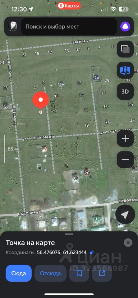 Продается участок 66:12:2201002:655 село Покровское (Каменский ГО) ул. 70 лет Победы