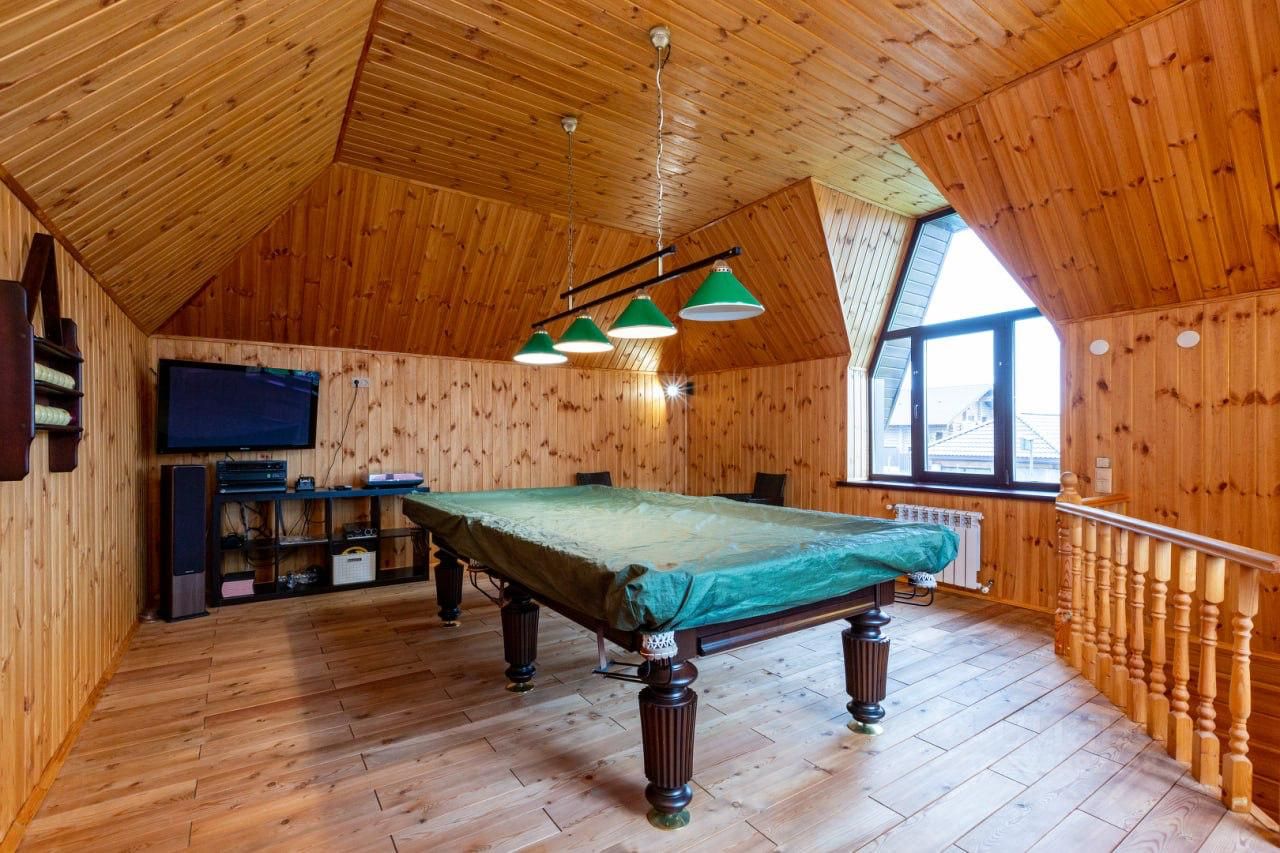Этот дом идеальное место для тех, кто ценит спокойствие и тишину, но не готов отказываться от удобств городской жизни. Представьте себе: каждое утро вы просыпаетесь под пение птиц, наслаждаясь свежим воздухом и прекрасным видом из окна. Вечером, после насыщенного дня, вы можете расслабиться в собственной бане, поиграть в бильярд или просто провести время с семьей на уютной террасе.