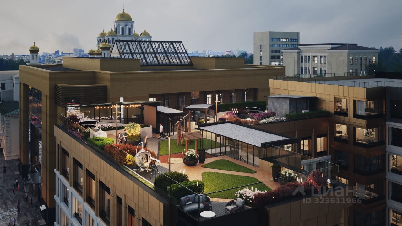Благоустройство Двор жилого квартала расположен на крыше здания. Местом притяжения станет лаунж-зона с ландшафтным садом и шахматными столиками. Для отдыха в прохладное время года предусмотрены тёплые обогреваемые беседки. Детская зона — это горки, качели, игровые площадки и песочница.