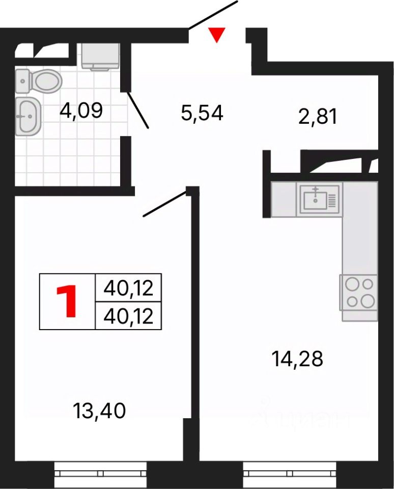 Просторная 1-комн. квартира с предчистовой отделкой в ЖК ''Алиса'' на 6 этаже. Общая площадь: 40.12 кв.м., жилая: 13.4 кв.м., площадь просторной кухни-столовой: 14.28 кв.м. Все окна выходят на одну сторону. В квартире один совмещенный санузел. Высота потолков 2.72 м.