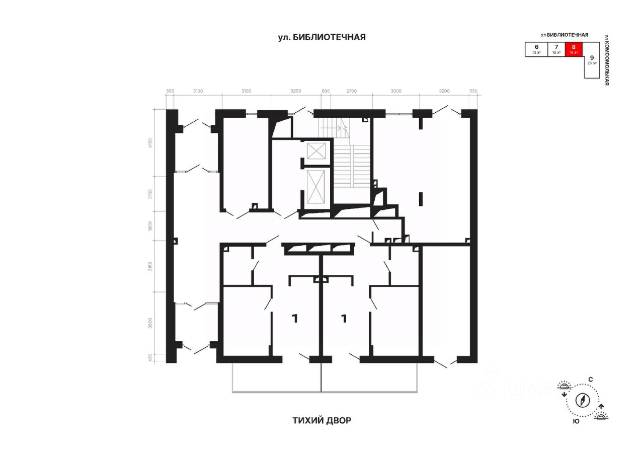 Дом монолитный, черырехподъездный, высотой 25 этажей. Квартира находится в 8-й секции в корпусе 1. На этаже 5 квартир.